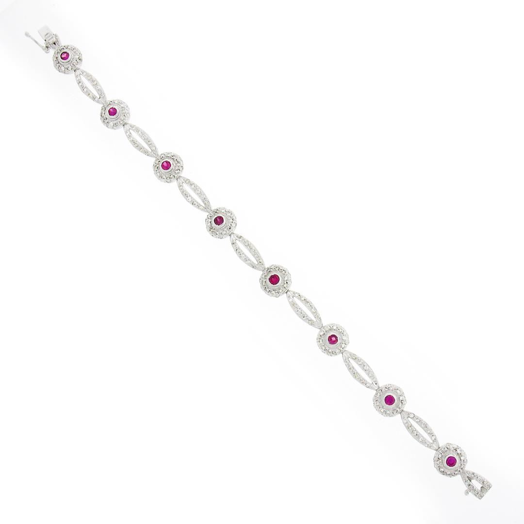 18k White Gold 6.75" Natural Diamond & Lab Grown Ruby Open Link Tennis Bracelet