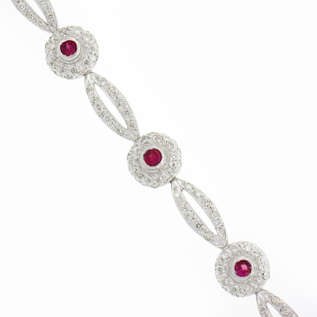 18k White Gold 6.75" Natural Diamond & Lab Grown Ruby Open Link Tennis Bracelet