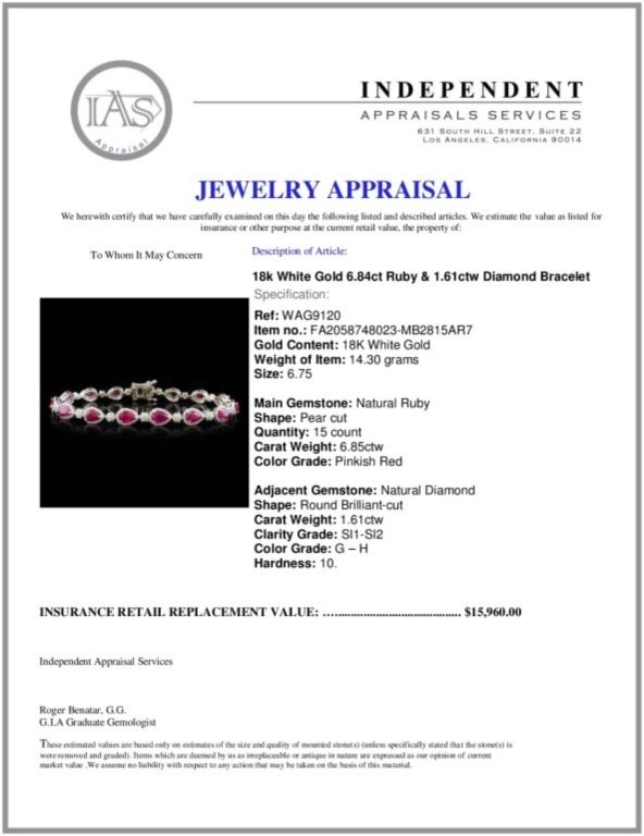 Regarding Appraised Jewelry and Loose Stones - Auctionfarm sends them out to a third party for Retail Replacement Value Appraisals, which are the most common. These types of evaluations are written for insurance needs. This would be the cost to replace the jewelry with an item of equal quality and kind, considered to be the current market price or the replacement value. This type of appraisal is done to protect you in the event of damage or loss of a valuable item. Our appraisals are conducted by independent 3rd Party appraisal firms that utilizes Certified GIA Gemologist. Appraisals should be used for verification of gemstone and/or metal weight, size, and grade only, not actual value. Appraisal value should be considered for insurance purposes only, not actual value, as price varies greatly from retail locations thru out the world. Items should not be purchased with the expectation to resell for appraisal price, or for profit.