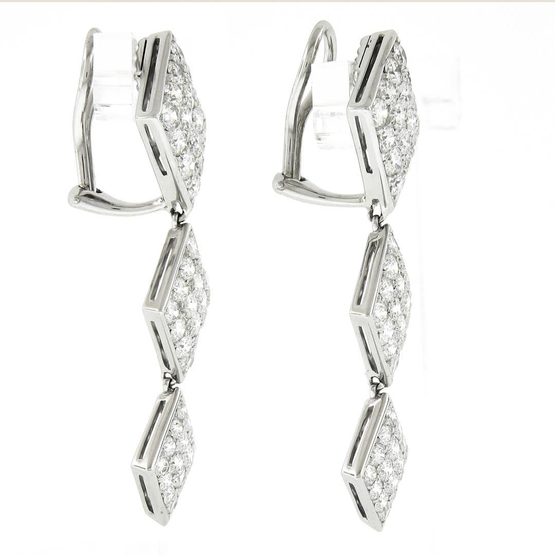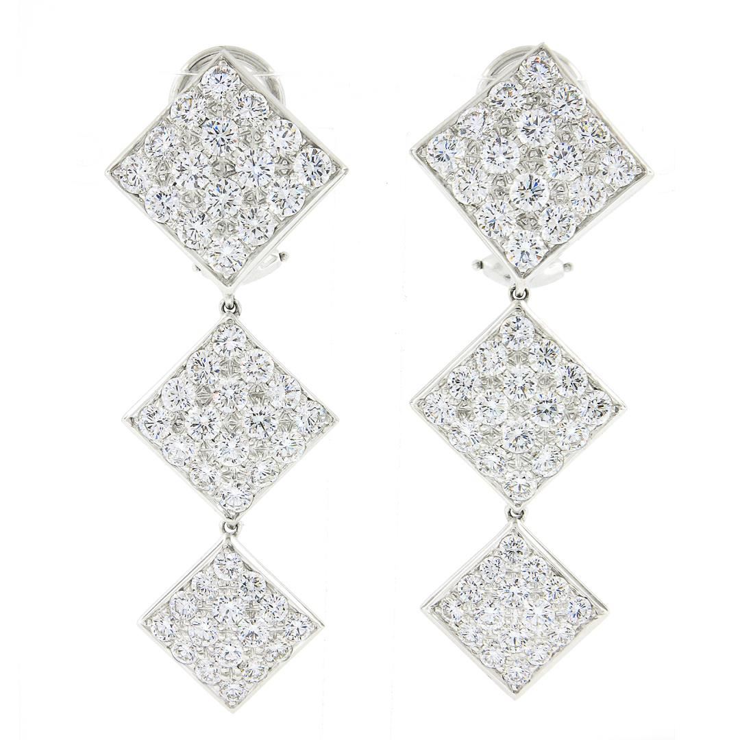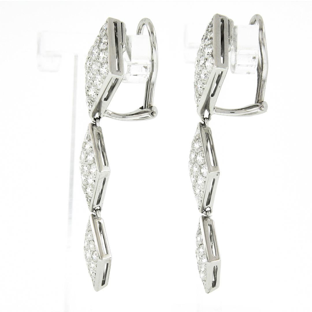 A solid 18k white gold dangle earrings, featuring 96 round brilliant cut natural diamonds (E/F - VVS2/VS1 ; 6ctw). The earrings measure approximately 49.8x18.2mm and weigh a total of 14.97 grams.