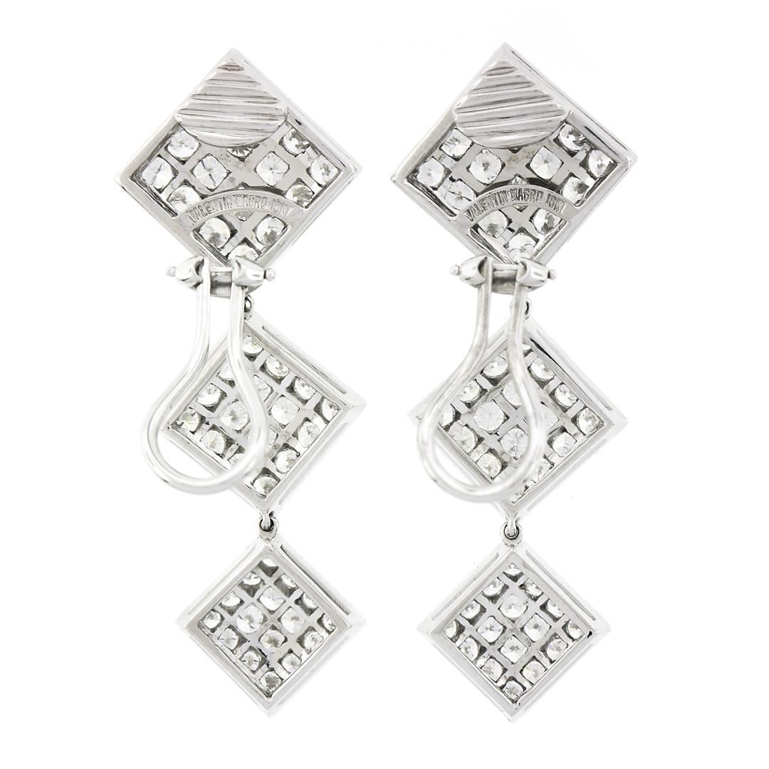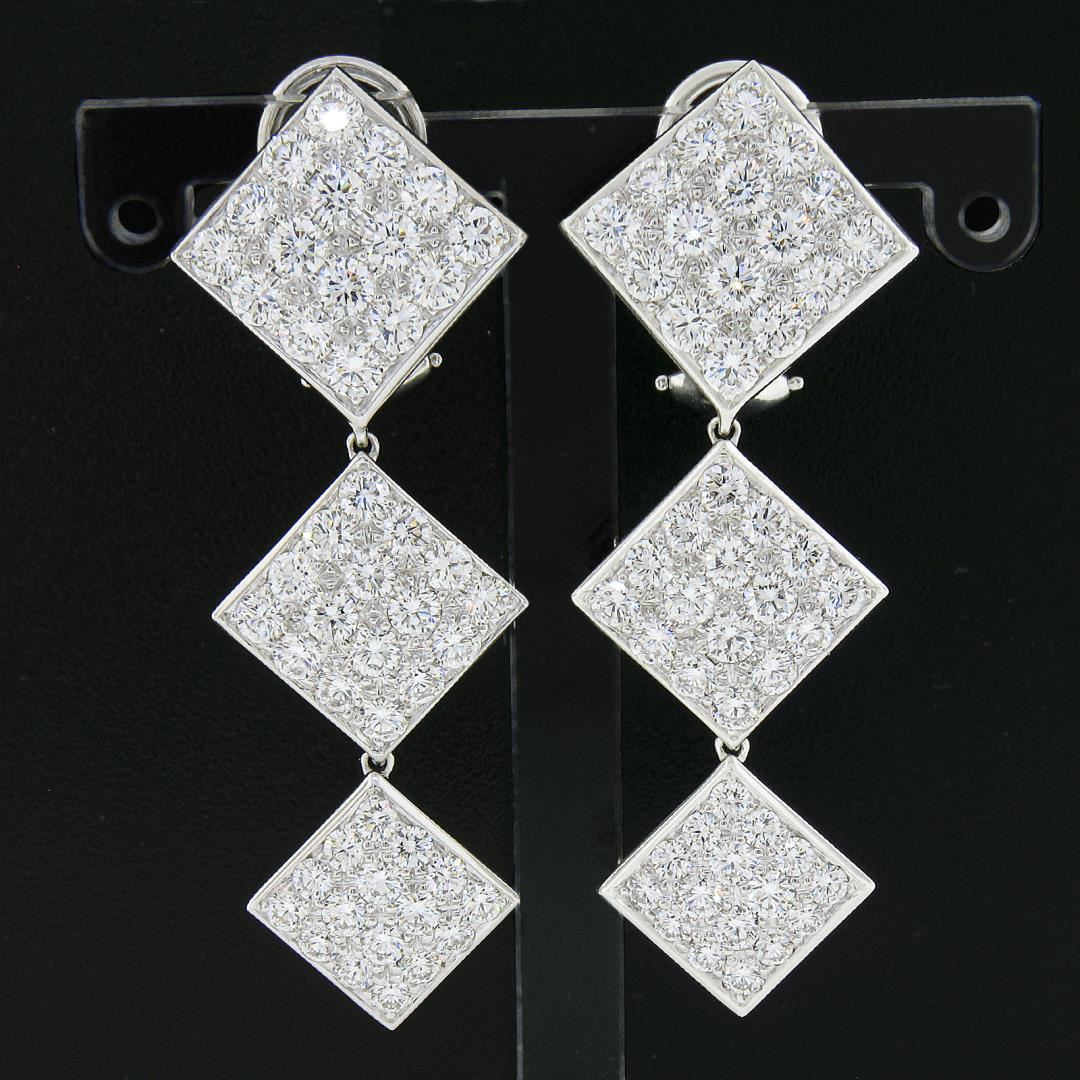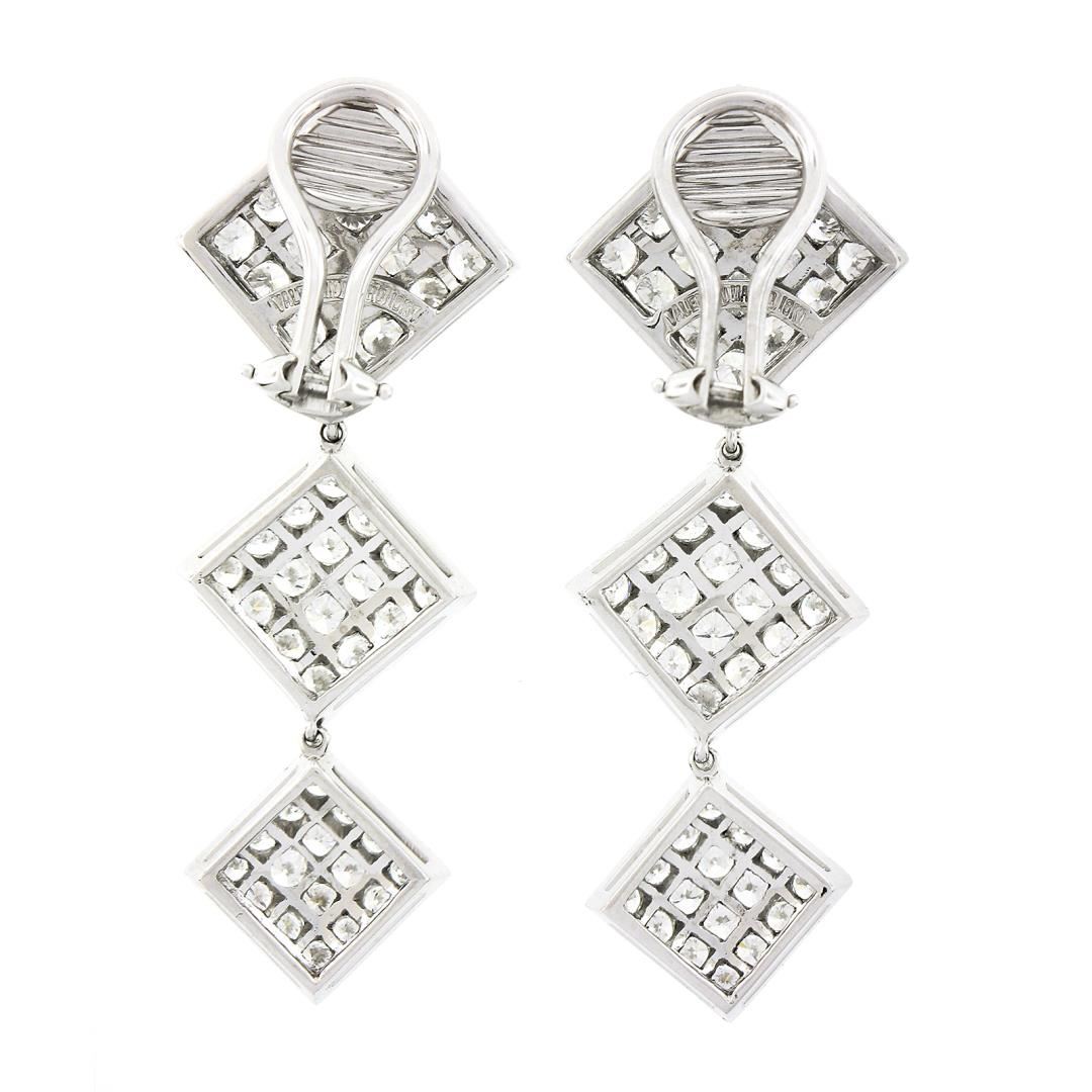 A solid 18k white gold dangle earrings, featuring 96 round brilliant cut natural diamonds (E/F - VVS2/VS1 ; 6ctw). The earrings measure approximately 49.8x18.2mm and weigh a total of 14.97 grams.