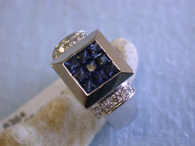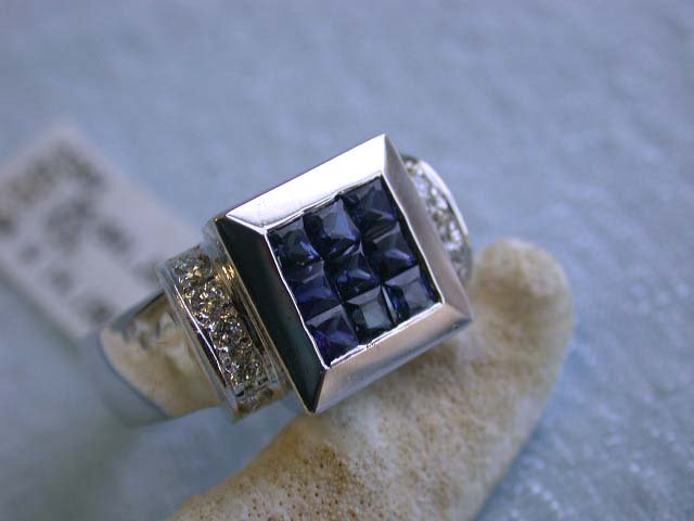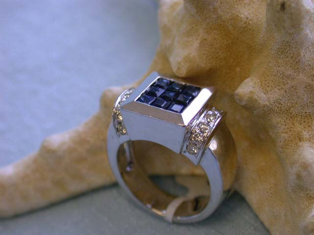18k White Gold Ring w/ Diamonds & Sapphire. This is an 18k White Gold Ring w/ 0.35 carat Round Diamonds in G color and VS clarity and 1.20 carats Sapphire. The size of this is 6.5 and weighs 14.19 grams.
