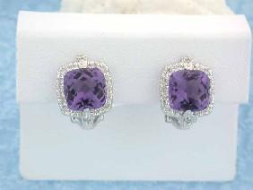 18k White Gold Earrings with Diamonds - 0.24 carat, 32 pieces and Amethyst - 5.05 carats, 2 pieces. The Weight is 3.95 grams