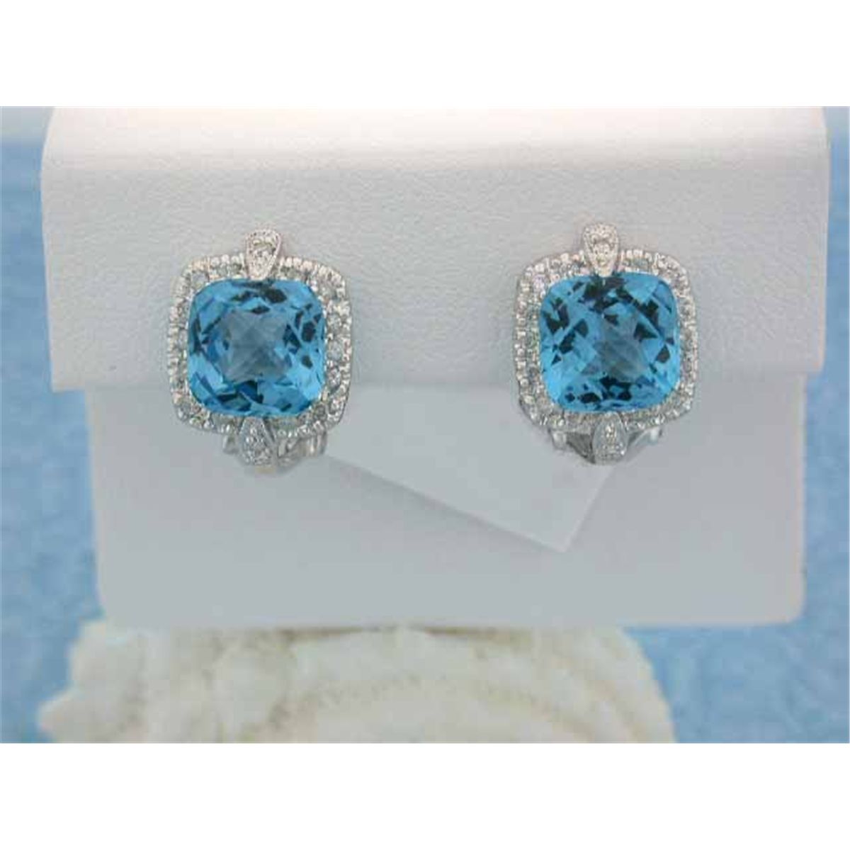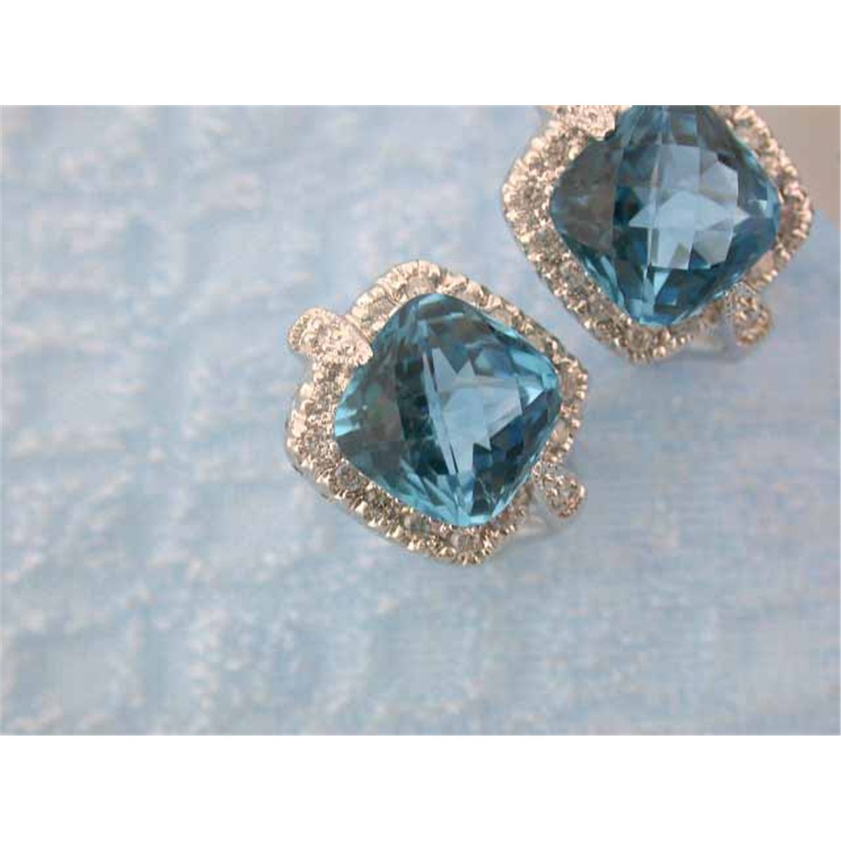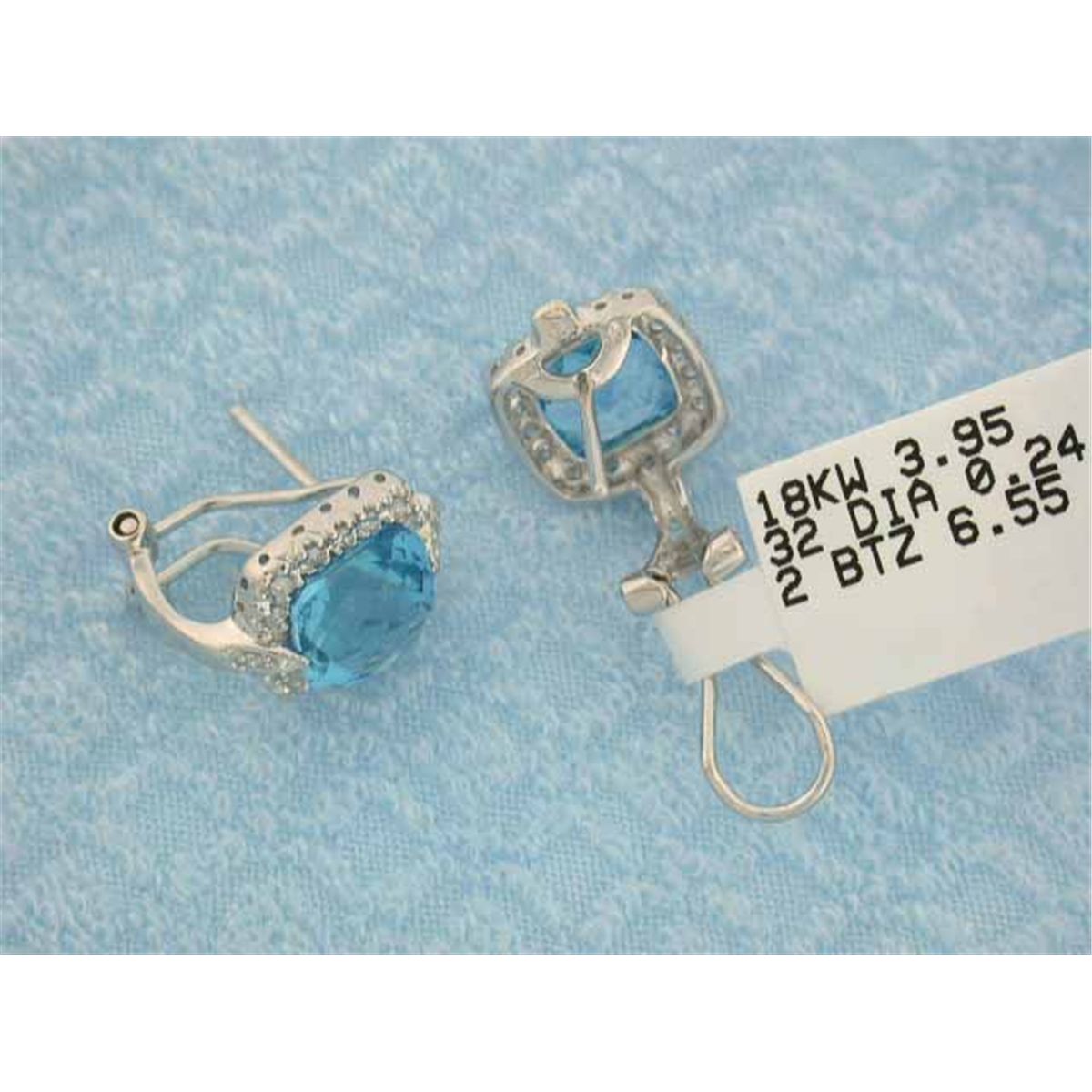 18k White Gold Earrings with Diamonds - 0.24 carat, 32 pieces and Blue Topaz - 6.55 carats, 2 pieces. It weighs 3.95 grams