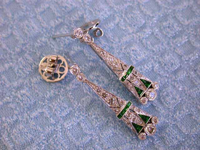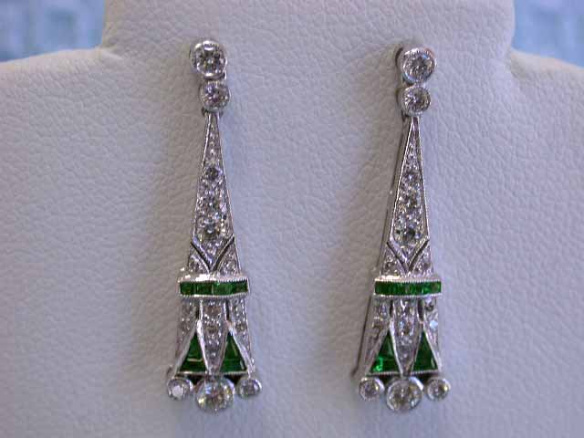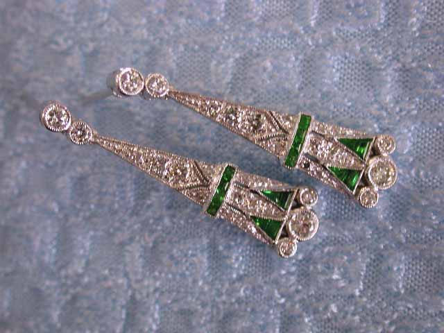 18k White Gold Earrings. These are Dangling Earrings with Diamonds - 0.52 carat, G color and SI clarity and Tsavorite - 0.28 carat. The earrings' length is approximately 1.5 inches.