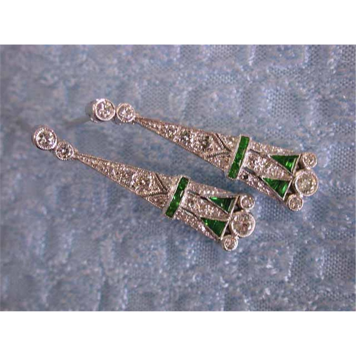 18k White Gold Earrings. These are Dangling Earrings with Diamonds - 0.52 carat, G color and SI clarity and Tsavorite - 0.28 carat. The earrings' length is approximately 1.5 inches.