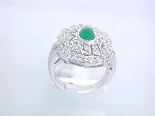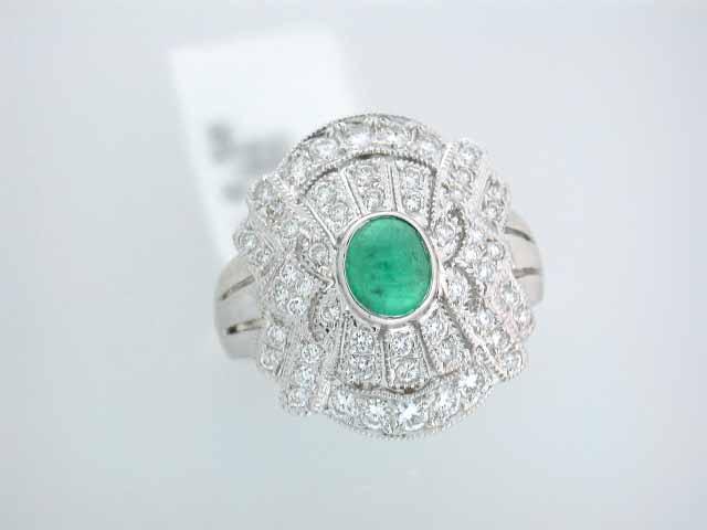 18k White Gold Ring with Diamonds and Emerald. The Diamonds are 0.84 carat and the Emerald is 0.85 carat. The ring size is 6.75 and weighs 8.5 grams.