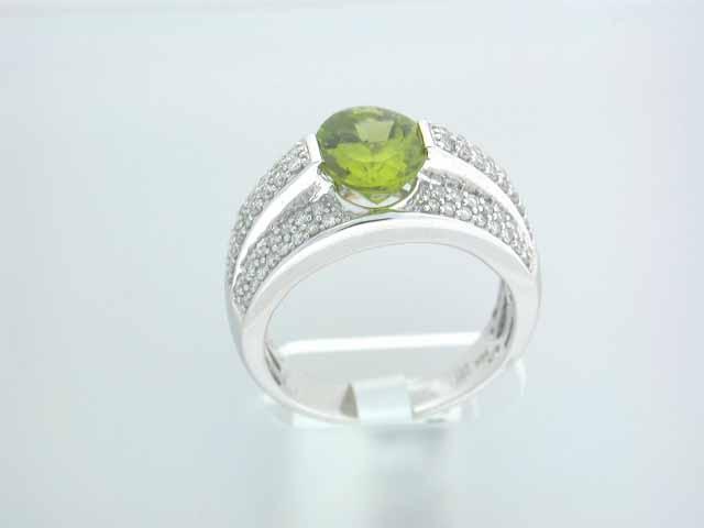 18k White Gold Ring. It has Diamond - 0.54 carat and Peridot - 2.60 carats. Its Size - 7 and Weight - 8.0 grams.