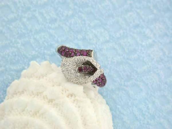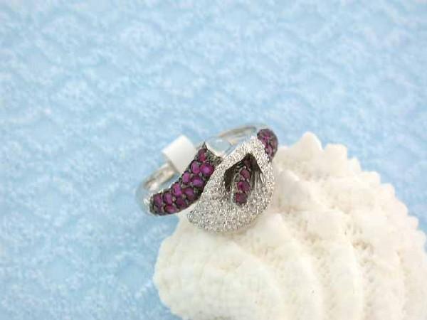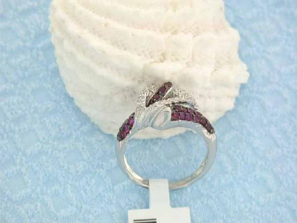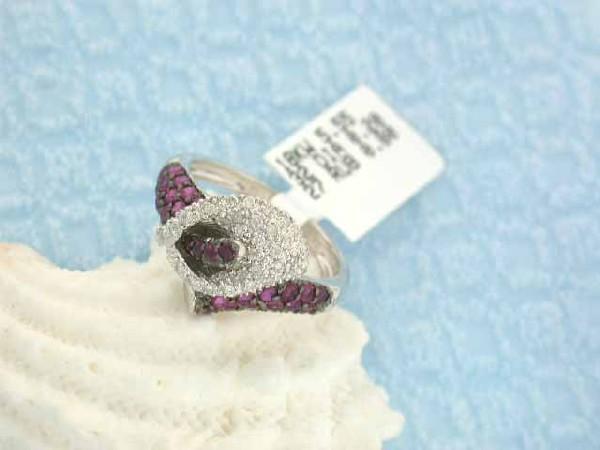 18k White Gold Ring with Diamonds - 0.20 carat, 32 pieces, G color and VS clarity and Ruby - 0.80 carat, 27 pieces. The ring size is 6.5 and weighs 5.55 grams
