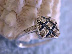 18k White Gold Ring with Diamonds - 0.17 carat, G color and VS clarity and Sapphire - 0.32 carats. The ring size is 7.5 and the Weight is 3.9 grams
