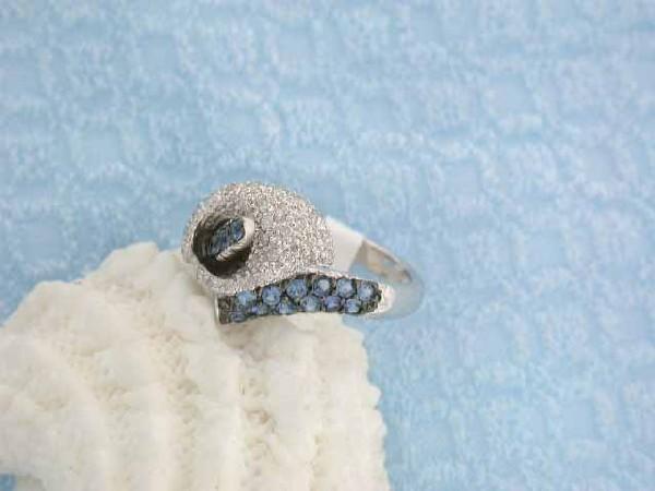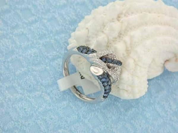 18k White Gold Ring with Diamonds - 0.20 carat, 32 pieces, G color and VS clarity and Sapphire - 0.65 carat, 27 pieces, Blue color. The ring size is 6.5 and weighs 5.55 grams