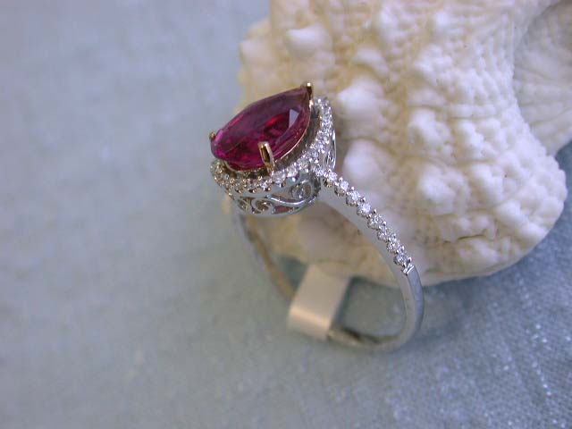 18k White Gold Ring. The ring has Diamonds of 0.22 carats, G color and VS clarity; and Center Stone of 1.84 carats, 10.7 mm X 6.9 mm. The ring is Size - 6.75 and Weighs - 3.30 grams.