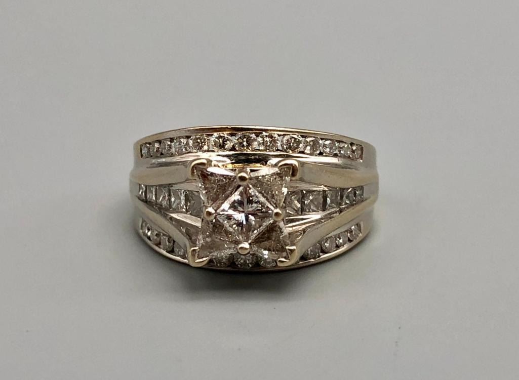 Up for consideration is a 18k white gold and approximately 2 carat diamond ring. This is fabulous wedding band set. It has elegant raised center diamonds with smaller bands of diamonds on either side. It is made from 18k white gold. MAKER: Unmarked. APPROX AGE: Fairly modern. SIZE: Fits a size 8. 3/8 inches tall. Weighs 12.3 grams. CONDITION: Good for its age, normal wear expected. Please look closely at the pictures as they are an important part of our description and are hereby incorporated into the description, specifically with regards to condition. SHIPPING: There will be a $5 handling / packaging fee for shipping this lot. The actual cost of postage will be added on top of that. BUY IT NOW: If you would like to buy this item now, without waiting for the auction day to bid on it, we do offer this option (which is available up to 48 hours before the actual auction starts). The “Buy it Now†price is the high estimate of this lot (plus applicable fees and the Buyer's premium is discounted to 10% when using the Buy it Now option). If you would like to exercise this option, you must contact us by email (or phone as long as you talk to someone live). Reference this lot number and your intention to "Buy it Now."