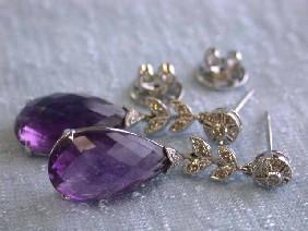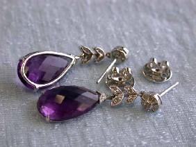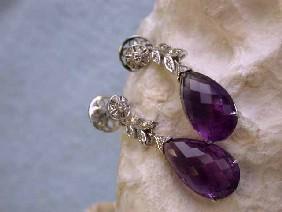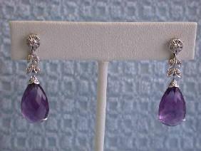 18k White Gold Earrings. These are Drop Dangling Earrings with Diamonds - 0.18 carat and Amethyst - 12.43 carats. The earrings are approximately 1.25 inches long and weighs 6.3 grams.