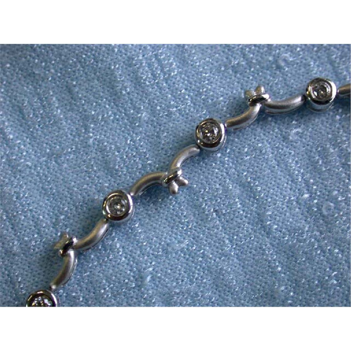 18k White Gold Bracelet w/ 0.30 carat Diamonds in G color and SI clarity. It is approximately 7 inches long and weighs 6.14 grams.