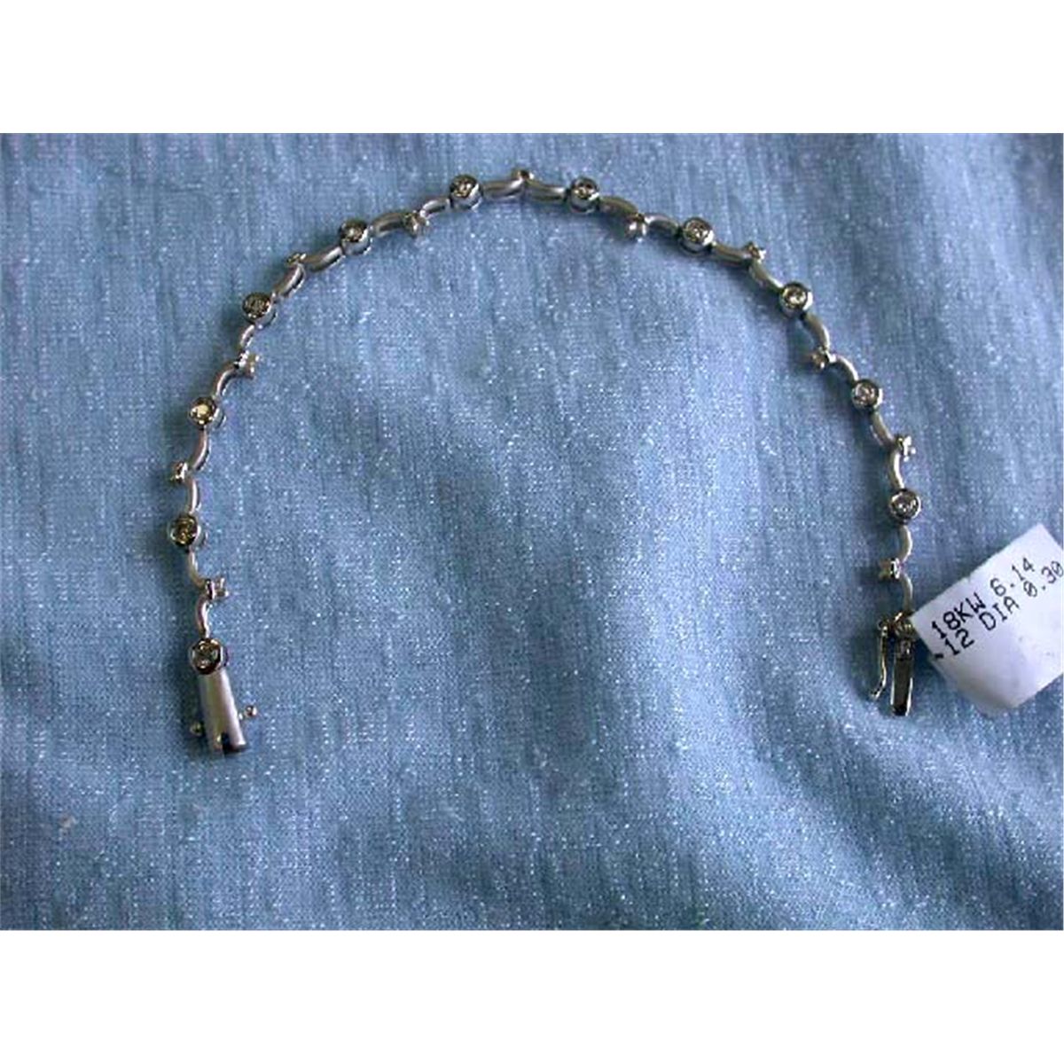 18k White Gold Bracelet w/ 0.30 carat Diamonds in G color and SI clarity. It is approximately 7 inches long and weighs 6.14 grams.