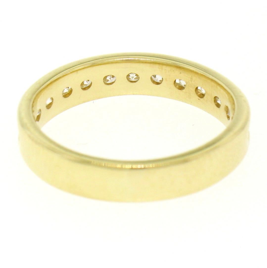 One Classic 18k Yellow Gold 0.33ctw 11 Channel Round Brilliant Cut Diamond Band Ring. Item Details: Material: 18k Solid Yellow Gold, Weight: 3.5 Grams, Stone(s): (11) Natural Genuine Diamonds - Round Brilliant Cut - Channel Set - F Color - VS2 Clarity, Total Carat Weight: 0.33 (approx.), Ring Size: 5 (We can custom size this ring.), Ring Width: 3.81mm, Ring Height: 1.60mm rise off the finger, Condition: Excellent condition!