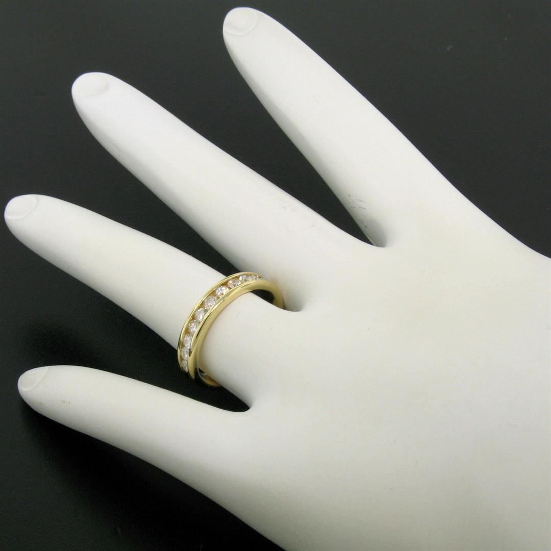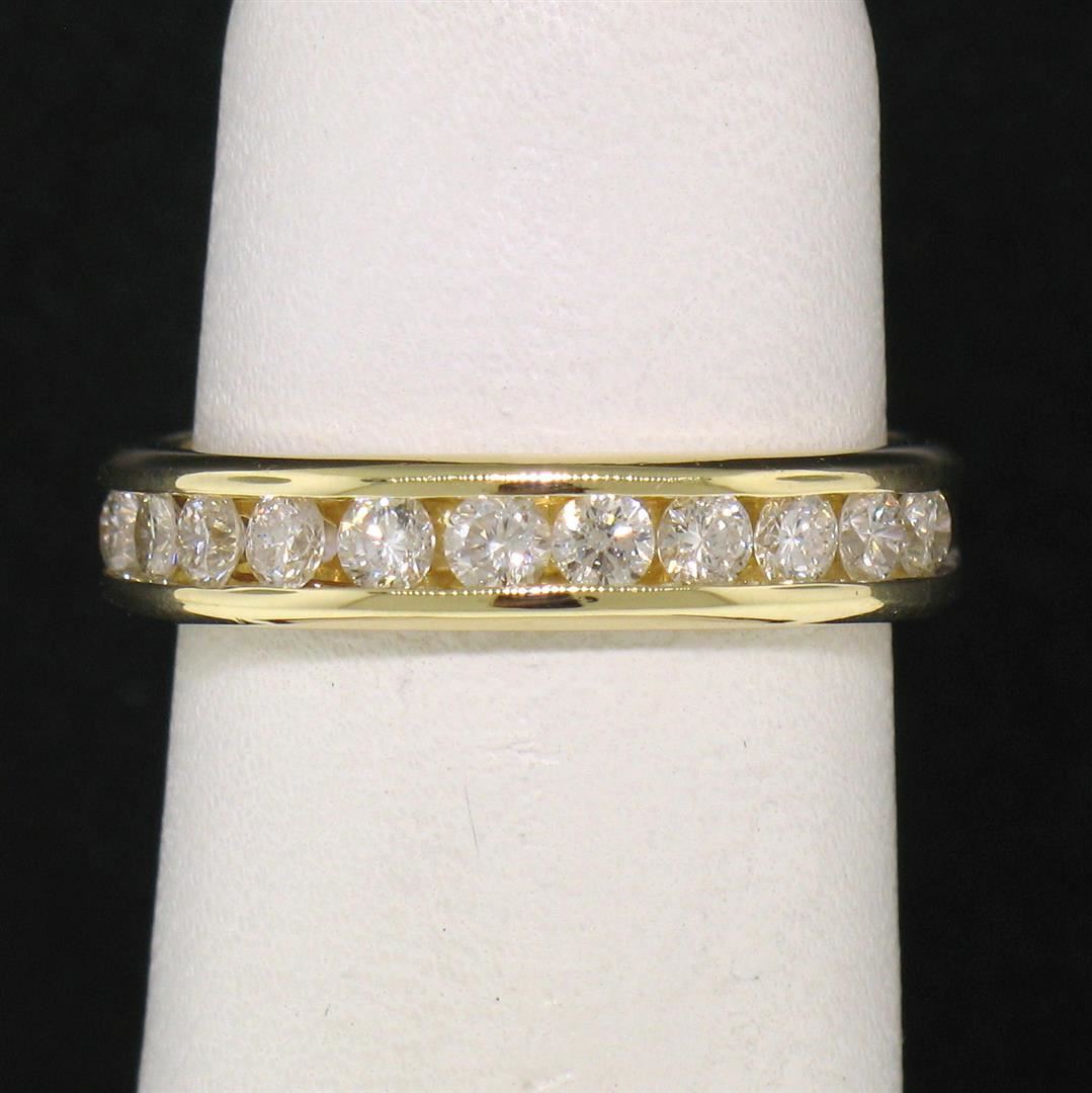One Classic 18k Yellow Gold 0.33ctw 11 Channel Round Brilliant Cut Diamond Band Ring. Item Details: Material: 18k Solid Yellow Gold, Weight: 3.5 Grams, Stone(s): (11) Natural Genuine Diamonds - Round Brilliant Cut - Channel Set - F Color - VS2 Clarity, Total Carat Weight: 0.33 (approx.), Ring Size: 5 (We can custom size this ring.), Ring Width: 3.81mm, Ring Height: 1.60mm rise off the finger, Condition: Excellent condition!