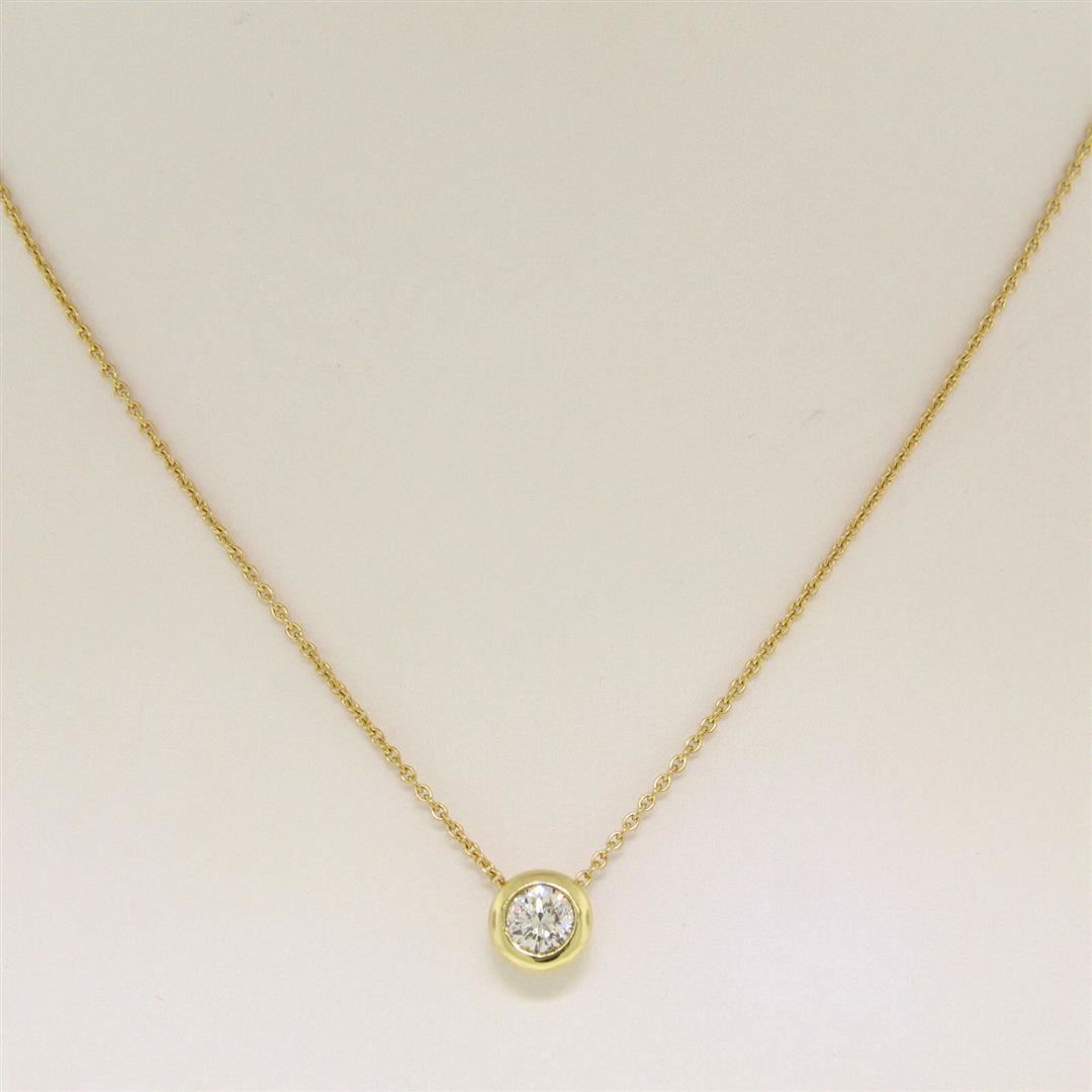 One NEW 18k Yellow Gold 0.40ct F VS1 Bezel Round Diamond Solitaire Pendant 18" Chain. Item Details: Material: 18K Solid Yellow Gold, Weight: 3.78 Grams, Stone(s): (1) Natural Genuine Diamond - Round Brilliant Cut - Bezel Set - VS1 Clarity - F Color, Total Carat Weight: 0.40 (approx.), Chain Type: Cable Link, Chain Length: 18 Inches, Clasp: Lobster Claw, Diameter: 7.05mm Thickness: 4.78mm Condition: NEW w/o Tag