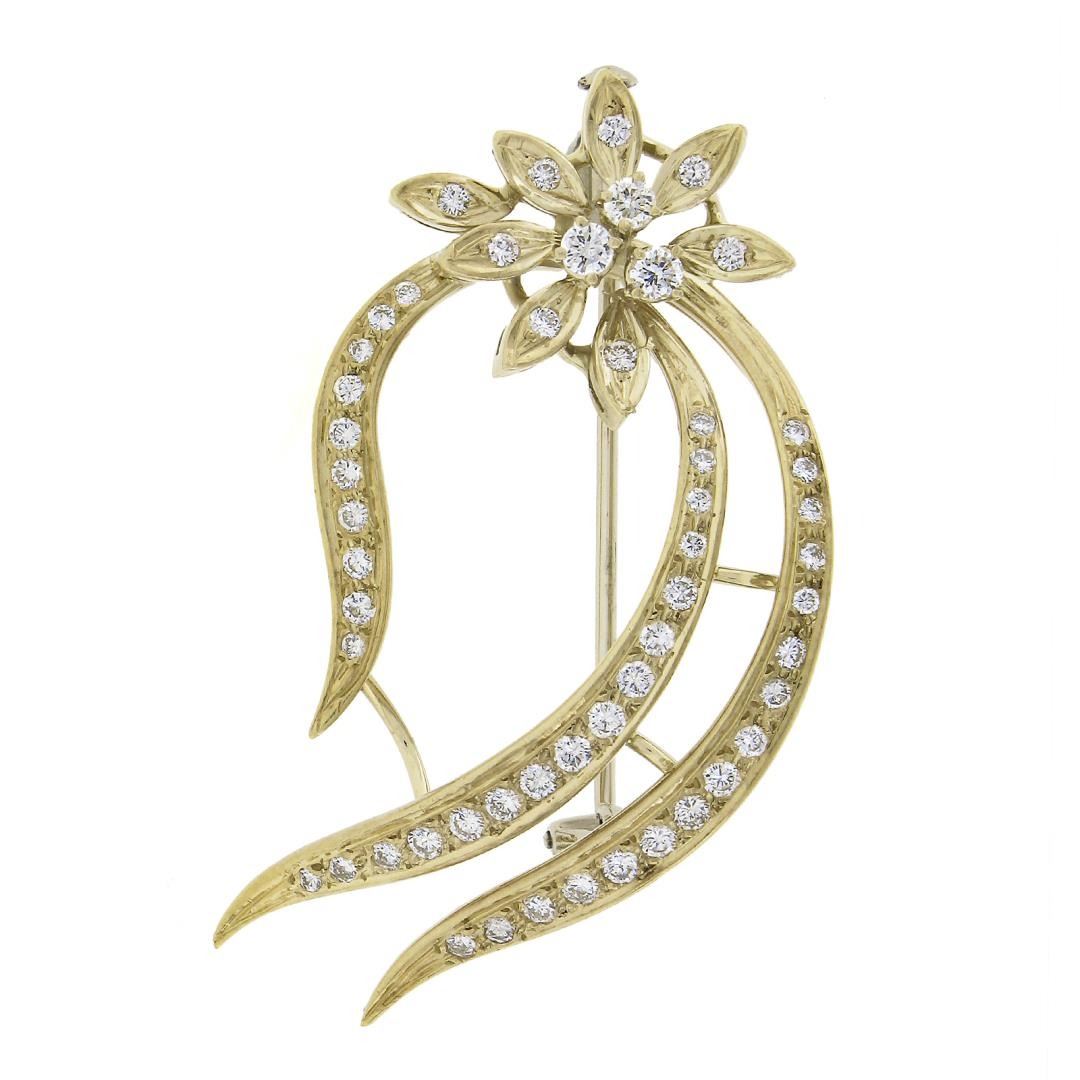 18k Yellow Gold 0.70ctw Round Brilliant Cut Diamond Open Work Floral Pin Brooch