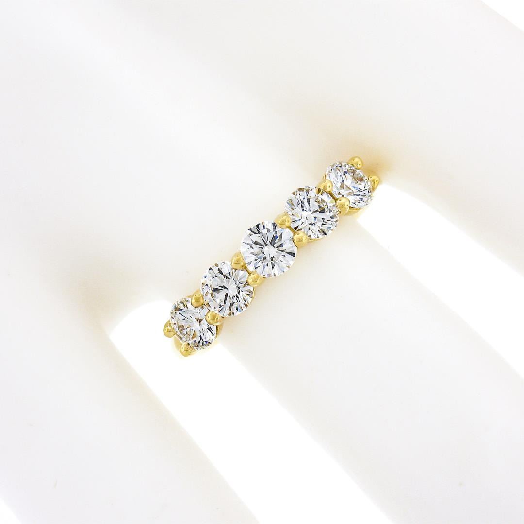 A new solid 14k yellow gold band ring, with 5 round ideal cut natural diamonds (F/G Color - VS1/VS2 ; 1.22ctw). The ring is size 6.5, weighs a total of 2.94 grams, and measures 4.1mm wide.