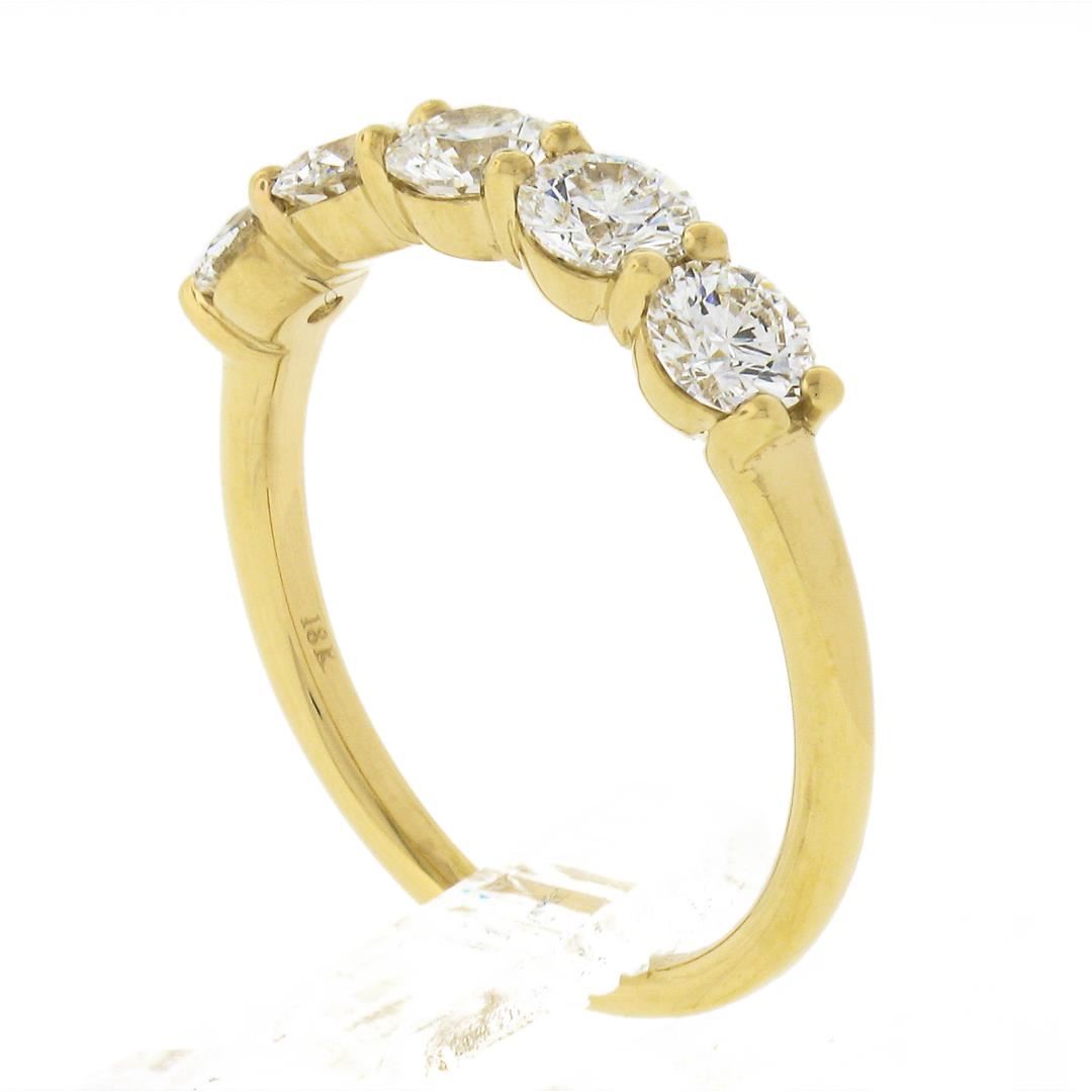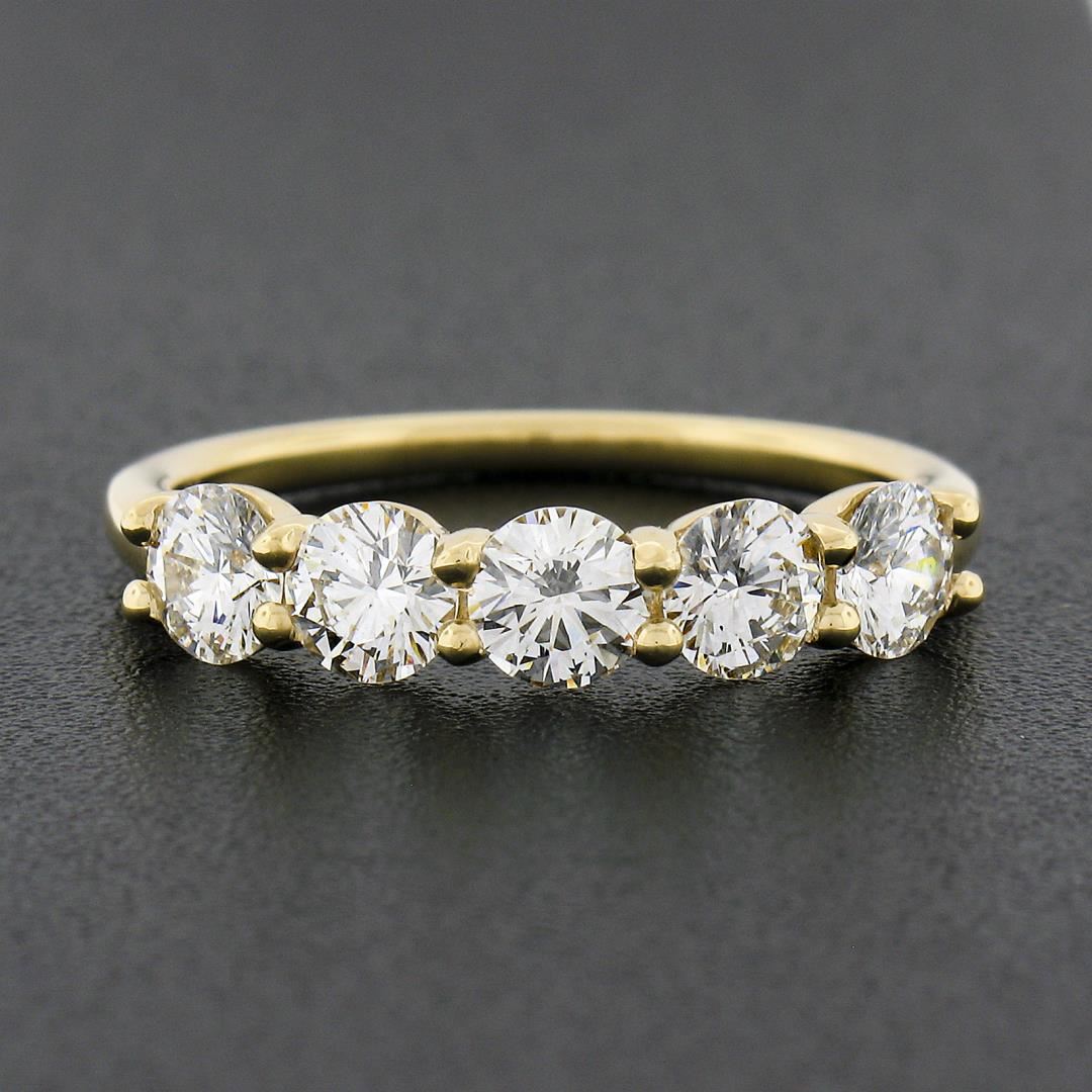 A new solid 14k yellow gold band ring, with 5 round ideal cut natural diamonds (F/G Color - VS1/VS2 ; 1.22ctw). The ring is size 6.5, weighs a total of 2.94 grams, and measures 4.1mm wide.