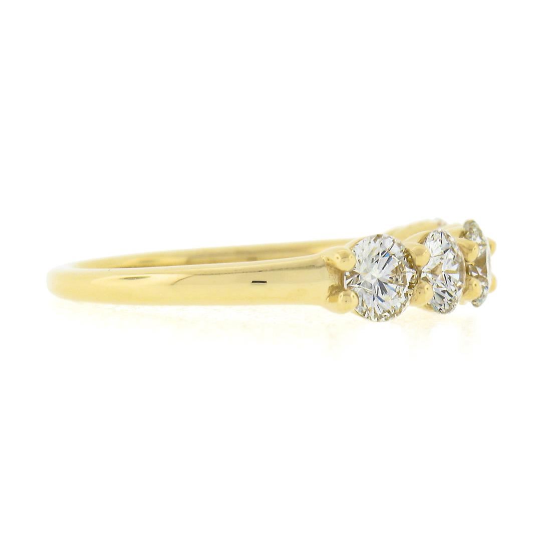 A new solid 14k yellow gold band ring, with 5 round ideal cut natural diamonds (F/G Color - VS1/VS2 ; 1.22ctw). The ring is size 6.5, weighs a total of 2.94 grams, and measures 4.1mm wide.