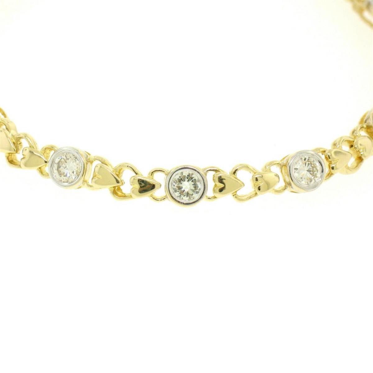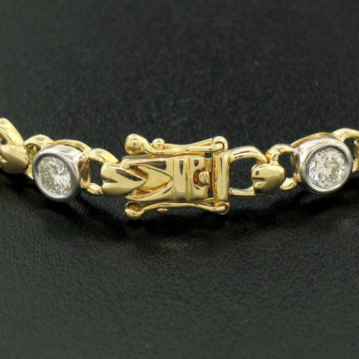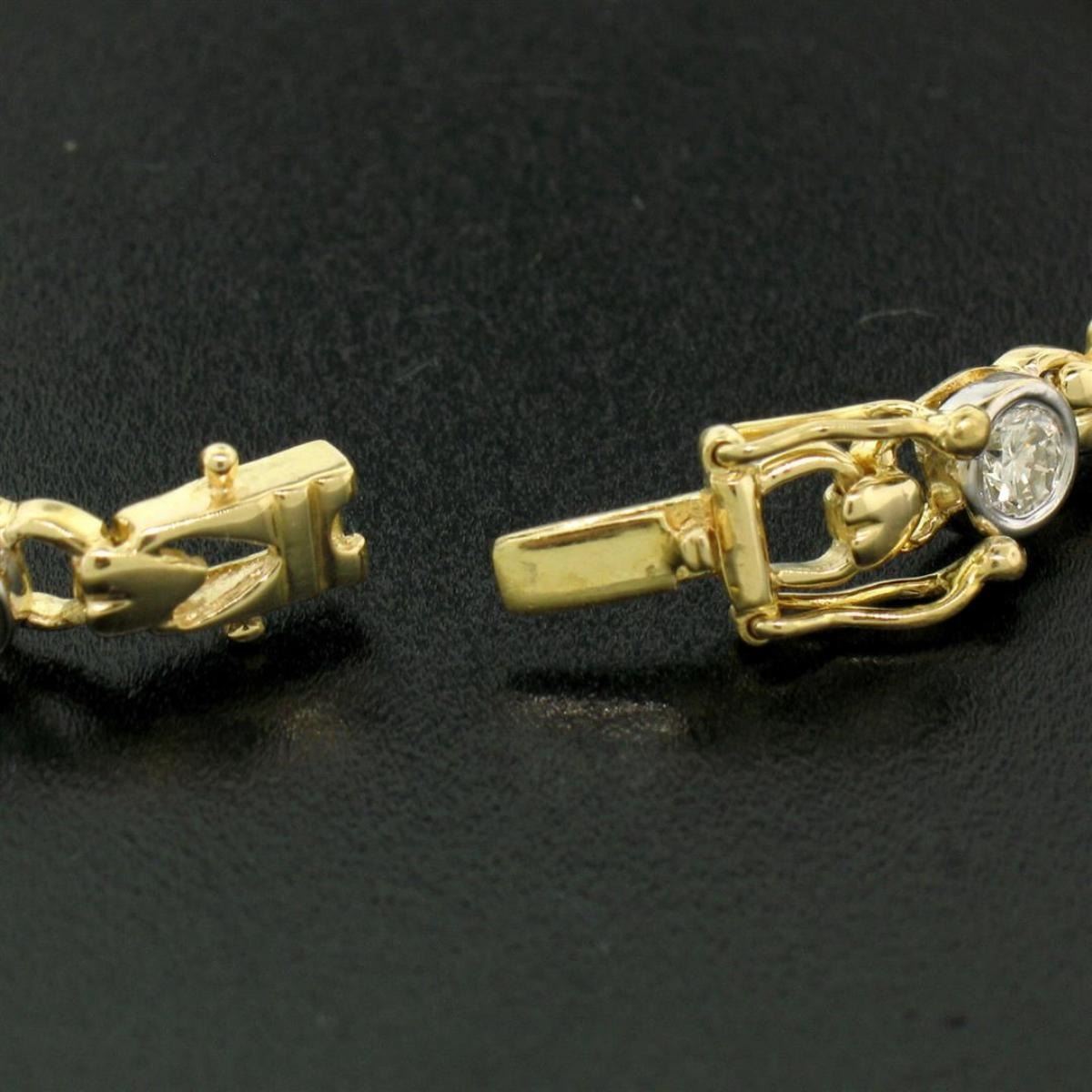 One 18k Yellow Gold 2.15ctw Round Brilliant Diamond Open Heart Link Tennis Bracelet. Item Details: Material: 18k Solid Yellow Gold, Weight: 10.60 Grams, Stone(s): (11) Natural Genuine Diamonds - Round Brilliant Cut - Bezel Set - VS2 Clarity - H/I Color, Total Carat Weight: 2.15 (approx.), Chain Type: Heart Solid & Open Link, Chain Length: 6.25 Inches, Clasp: Push Clasp w/ Dual Safety Latches, Width: 4.90mm Thickness: 3.20mm Condition: Like New!