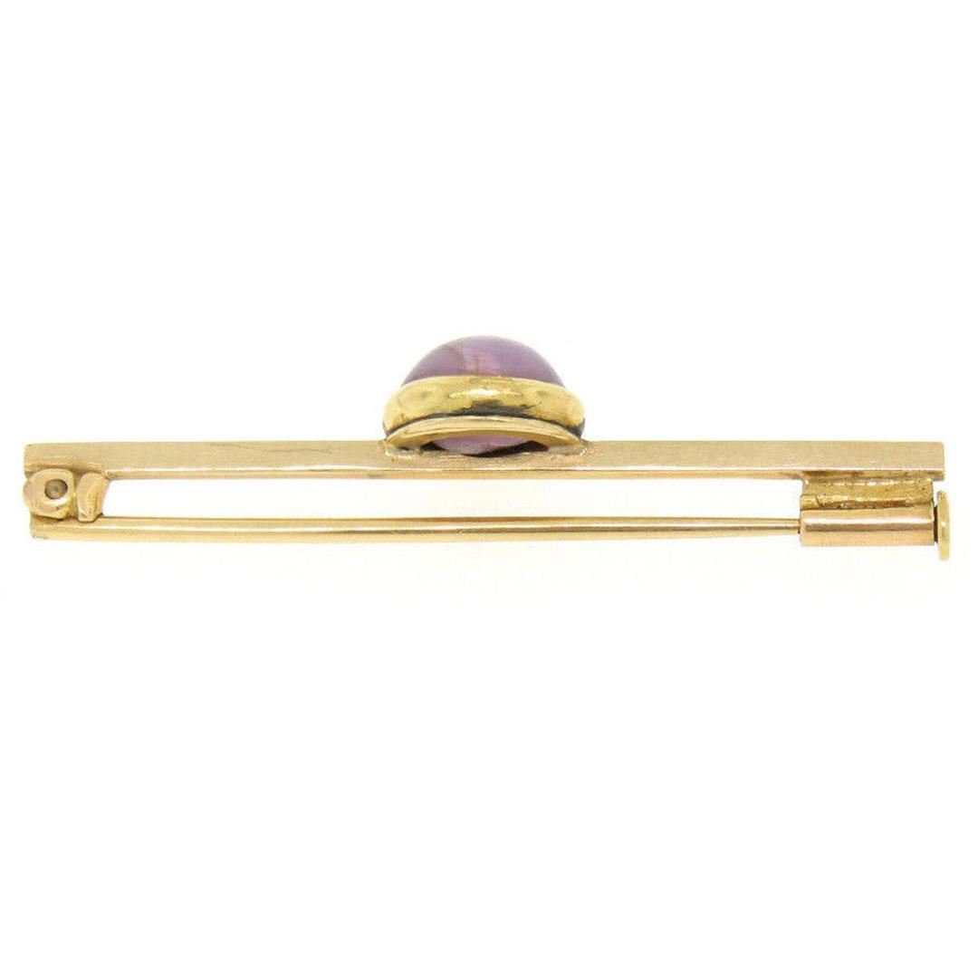 One Vintage 18k Yellow Gold 2.50ct Oval Bezel Set Pink Star Sapphire Bar Pin Brooch. Item Details: Material: 18k Solid Yellow Gold, Total Weight: 3.6 Grams, Stone(s): (1) Natural Genuine Star Sapphire - Oval Cabochon Cut - Bezel Set - Deep Pink to Lavender Color - 8.10x6.80mm / 2.50ct (approx.), Closure: Pin Back w/ Slide Barrel Lock, Overall Height: 8.24mm, Overall Width: 42.80mm, Overall Thickness: 6.70mm, Condition: Vintage piece. Excellent condition!