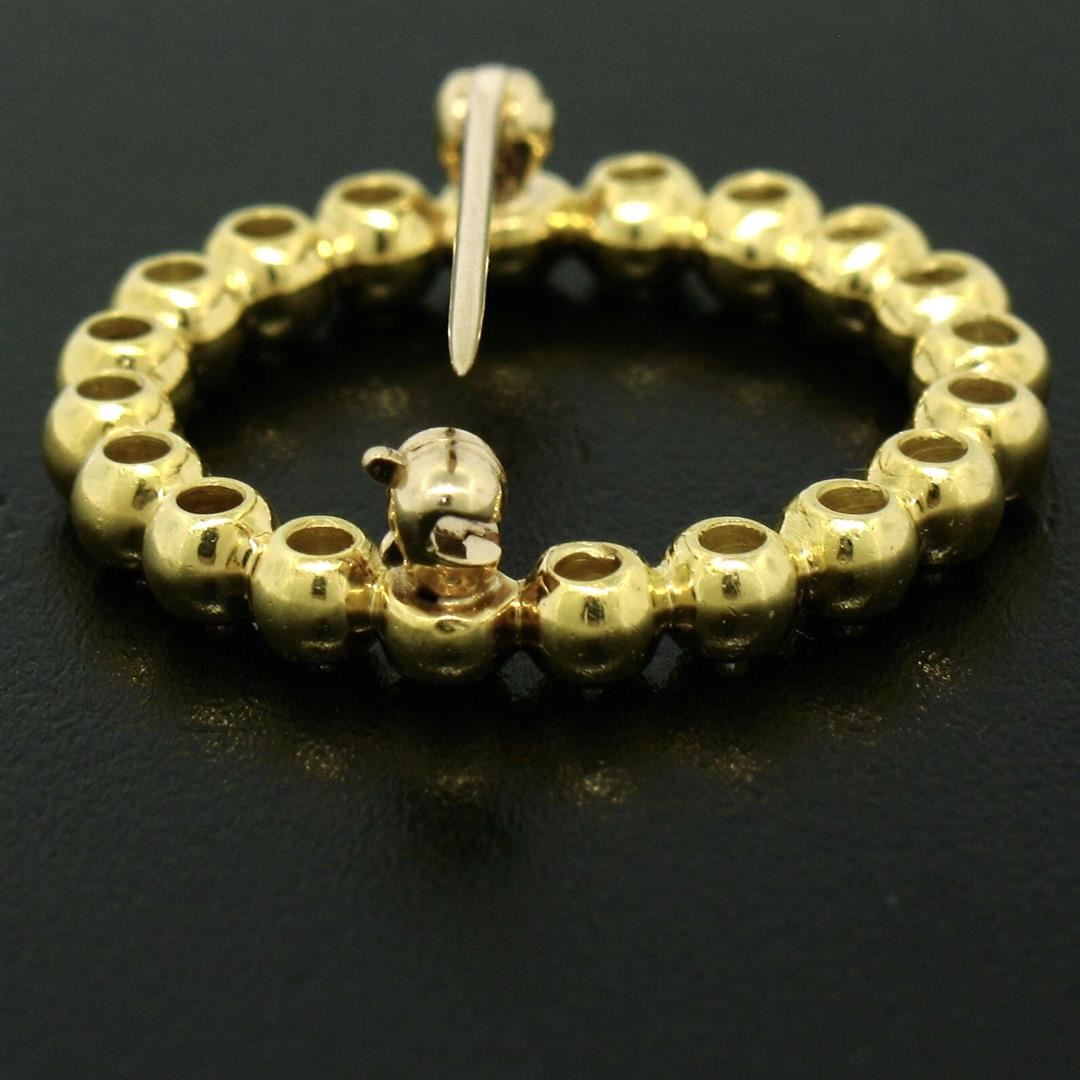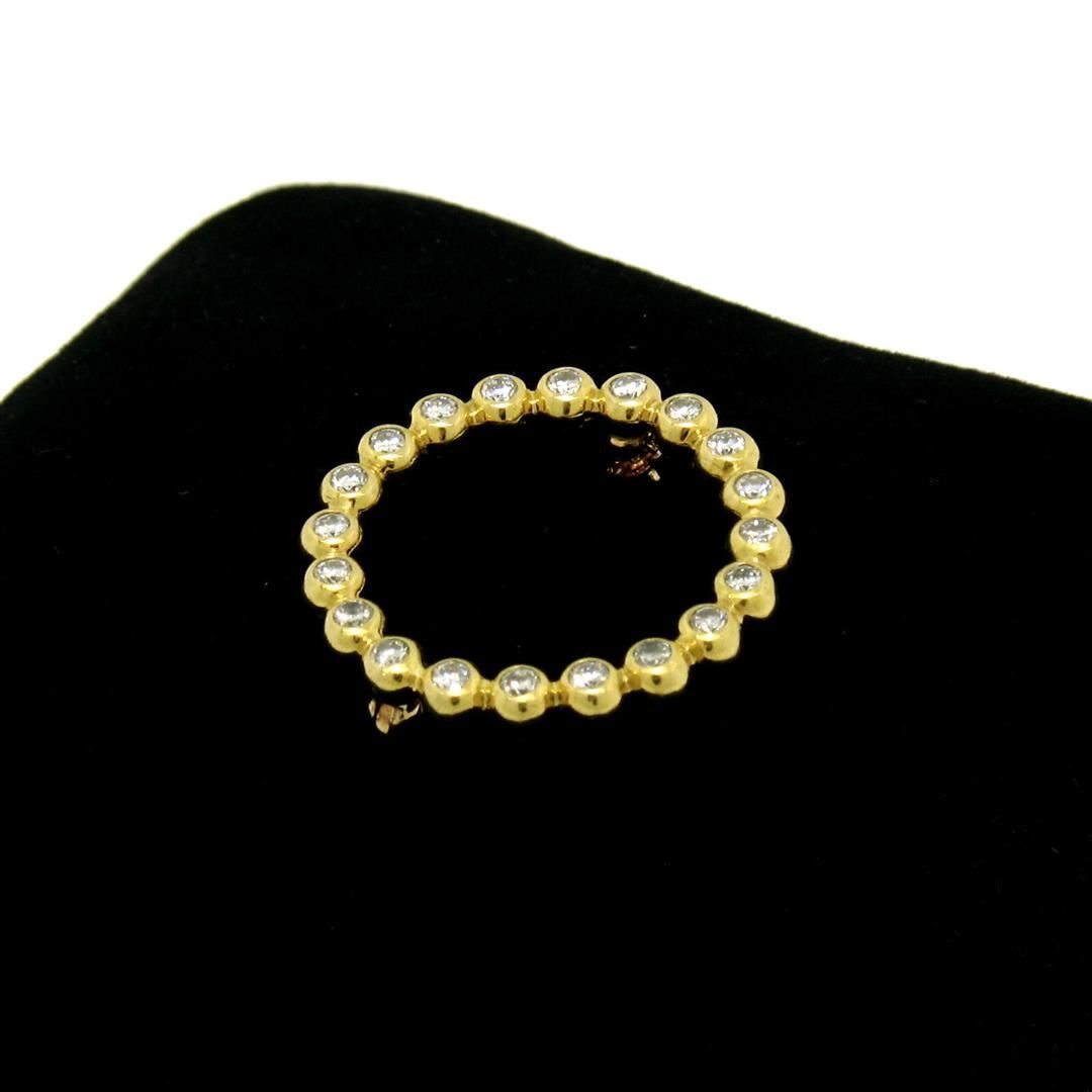 An estate solid 18k yellow gold wreath circle of life pin brooch, with 20 round brilliant cut natural diamonds (F/G - VS; 0.60ctw). Measures 23.0mm in dimension and weighs a total of 4.25 grams.