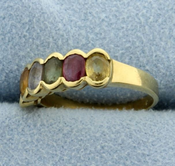 Contains topaz, citrine, white sapphire, spinal, rubelite, and quartz. Gemstones are 5.0x3.5mm. Approximately 1.5ct total weight. Size 5 3.5g