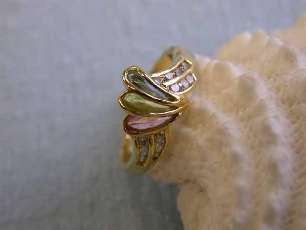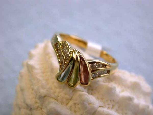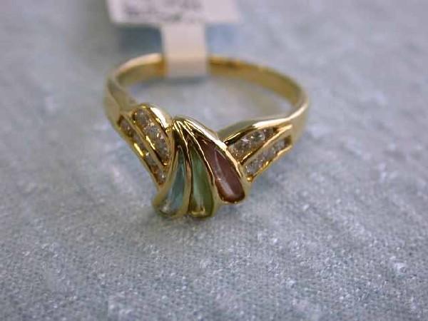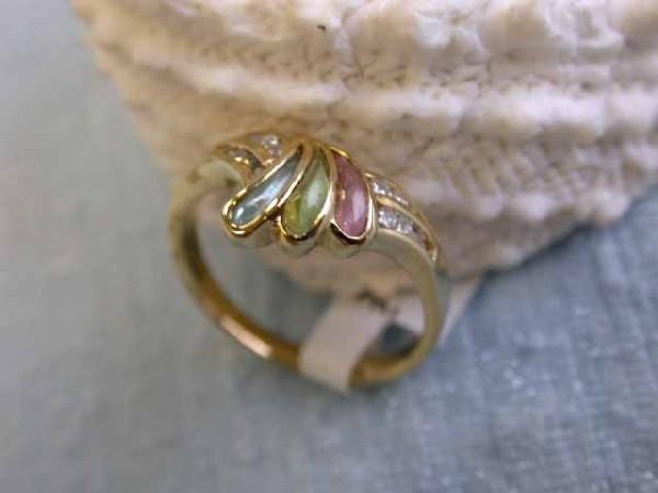 18k Yellow Gold Ring with Diamonds - 0.26 and Multi-colored Gems - 0.54. The ring size - 6.25 and weighs 3.0 grams