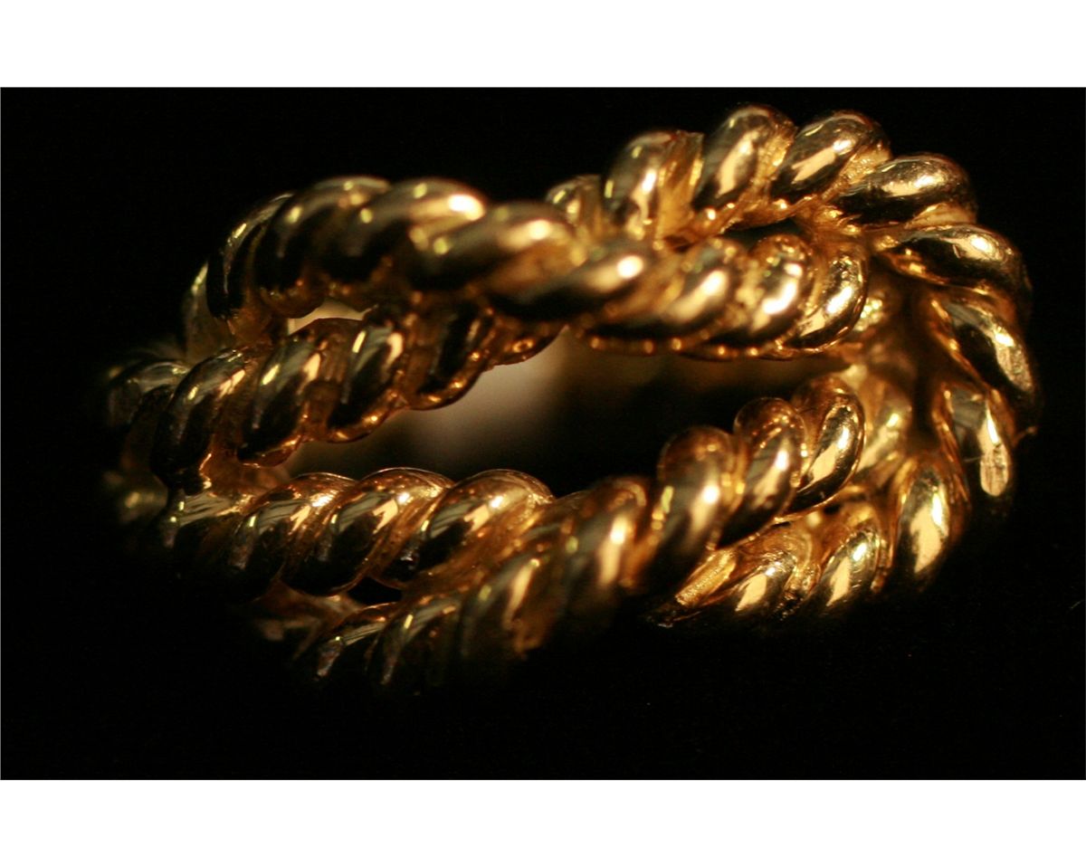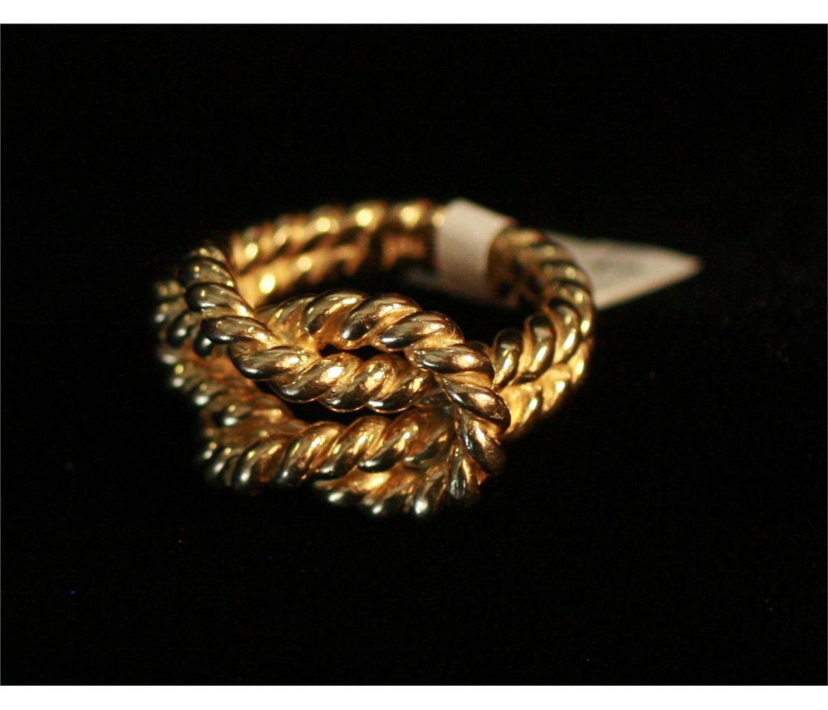 18k Yellow Gold Ring, Knot shaped double twisted ring measuring 13.2mm wide at the top and 4mm at the base of shank with 18k stamped inside, Cast constructed with a polished finish, Size 4-3/4, Total weight 14.0 grams, -227022-