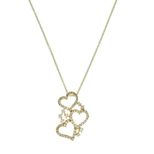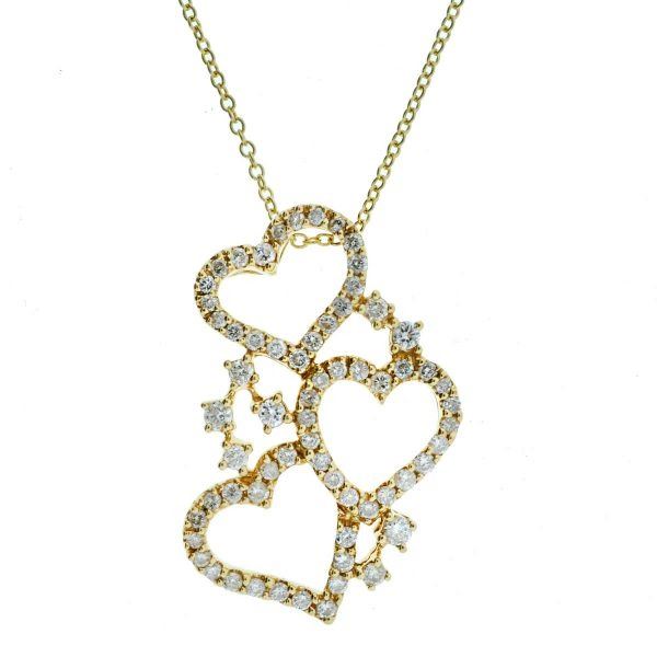 18k Yellow Gold 3 Heart Diamond Pendant Necklace