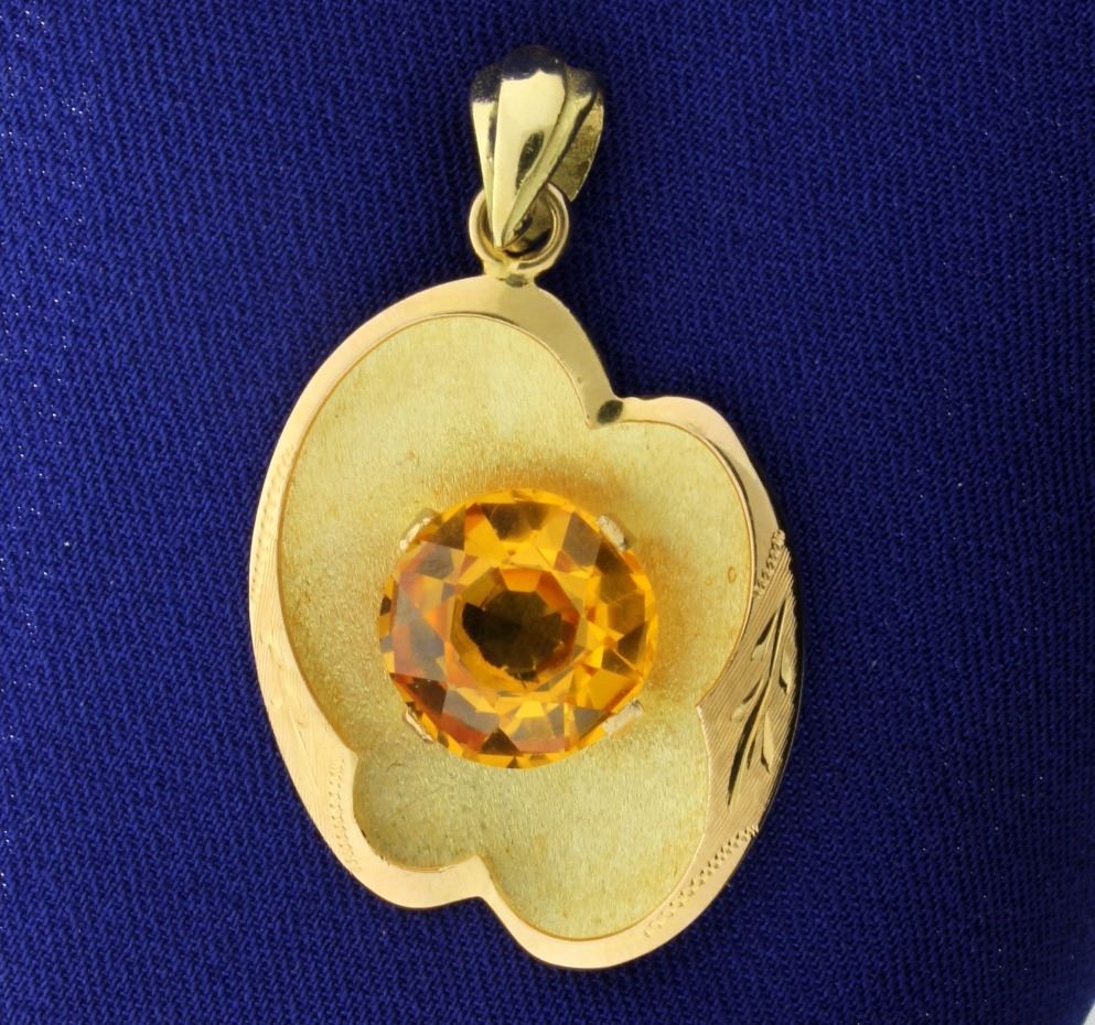 Citrine is fantastic yellow color and measure 12.25mm in diameter.  Pendant is 1.25x1.0 inches and is a very unique design.  7.7g