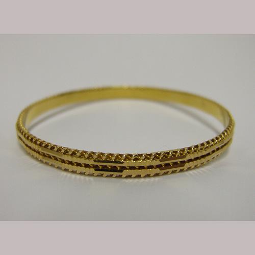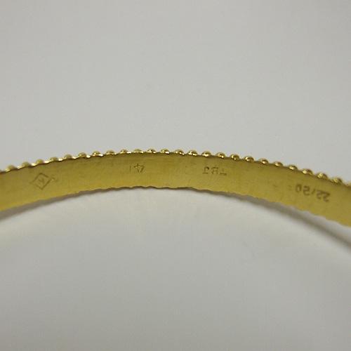 18k gold bangle bracelet; fancy goldwork; 3/16" wide; inside circumference is 7"; marked 22/20 TBJ and K inside diamond shape; weight 9.0 dwt/14.1 grams (no visible defects)
