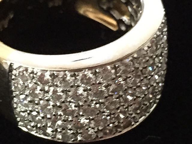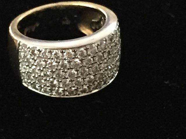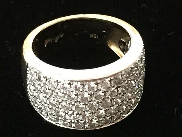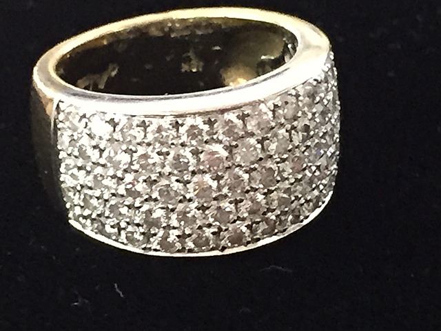 Estate Ladies 18kt gold diamond dinner ring with pave settings. Owners originally paid $2,500 when purchased at Micheal's Jewelers, signed Michael's Jewelers inside ring.