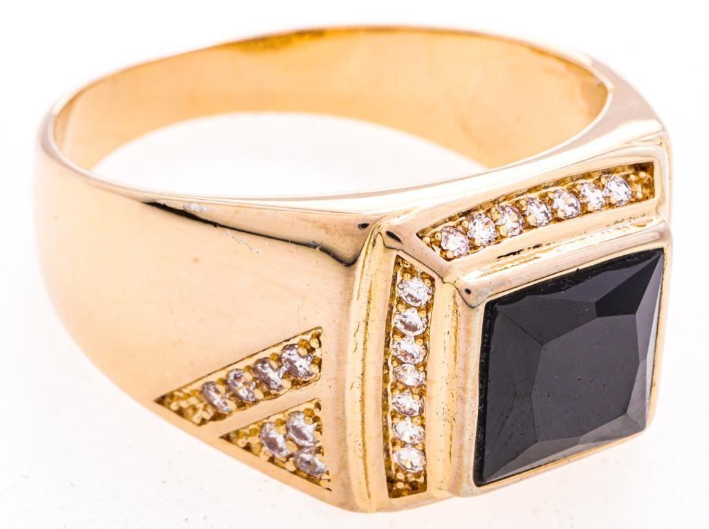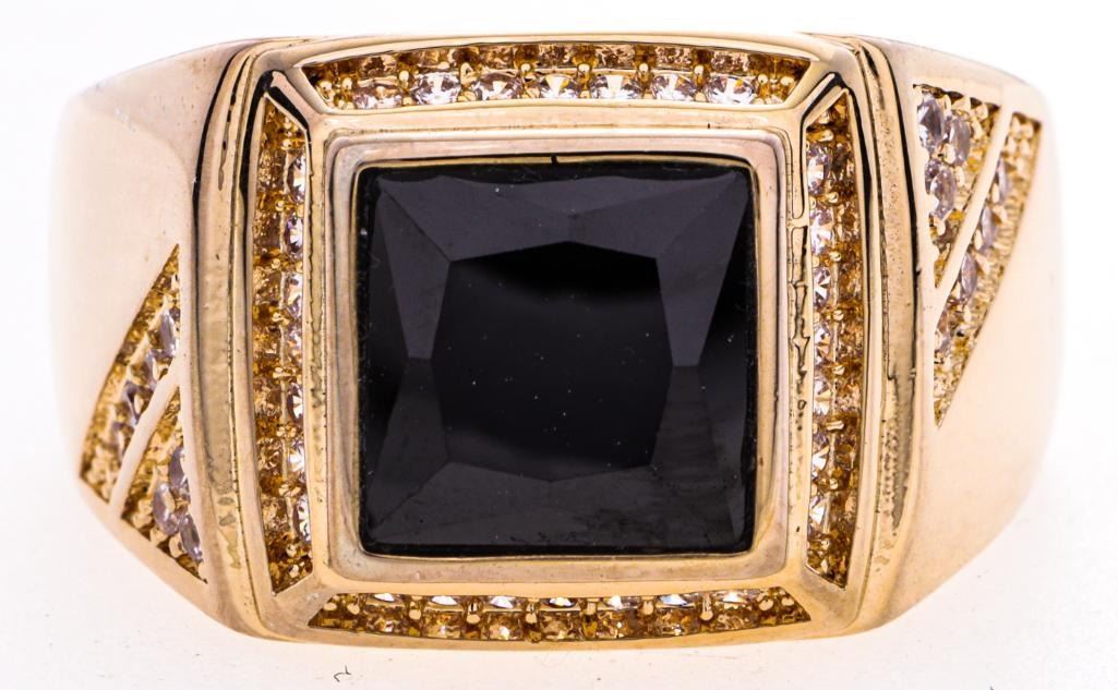 18kt Gold Overlay Signet Style Ring Black w/ Halo Size 10