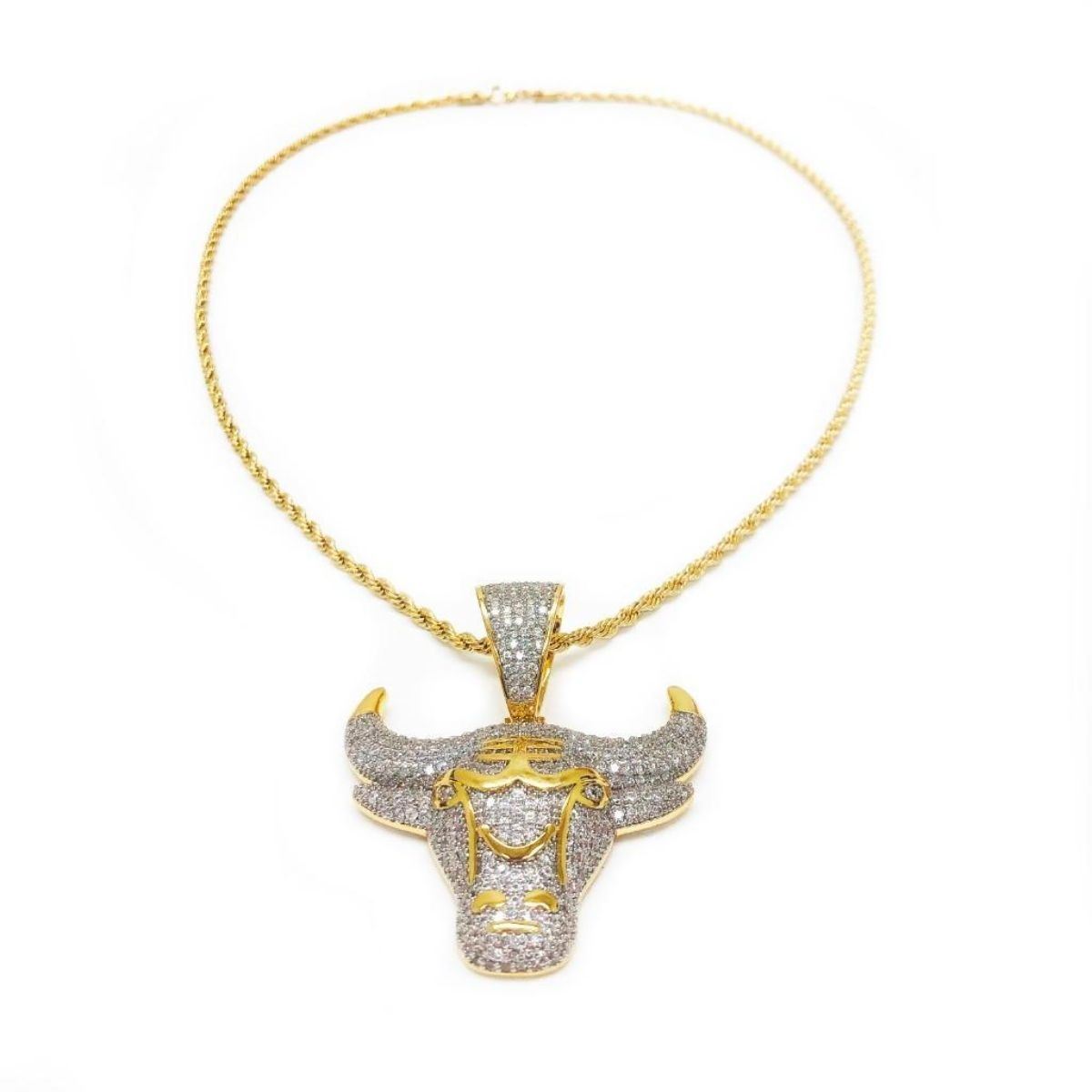 A 18kt Gold Plated Bulls Head Pendant Set With CZ Diamonds On a 18Kt Gold Plated Necklace. View Photos For Further Details.