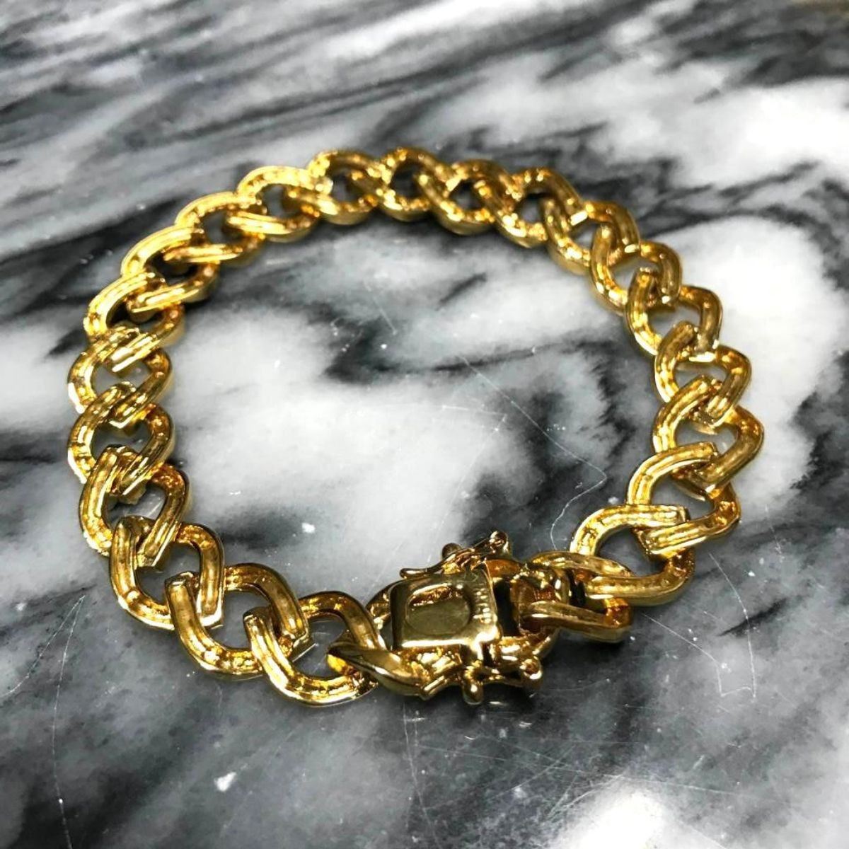 Tiny diamond chips within 18kt gold plate over sterling silver interlocking links 7 1/2" bracelet.