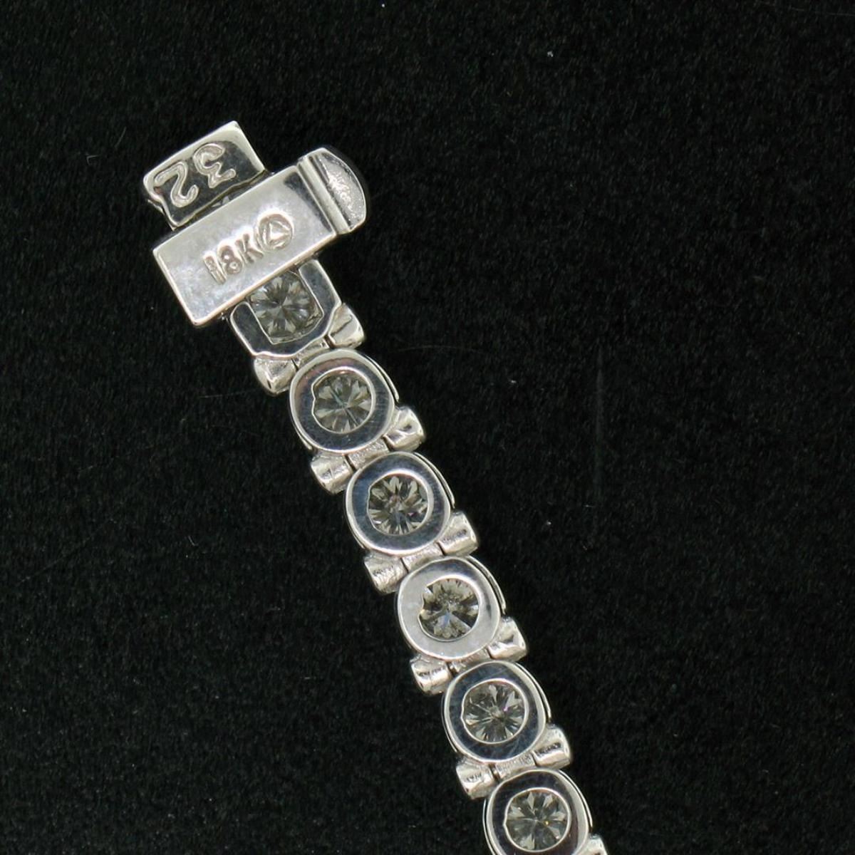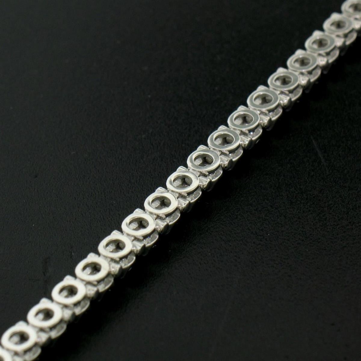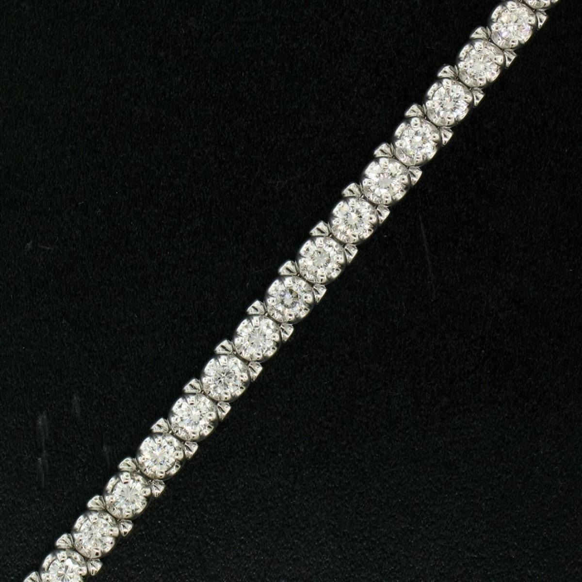 A brand new 18kt white gold tennis bracelet with 3.48ctw of round diamonds (G/H - VS1/VS2). It weighs a total of 17.56 grams, measures 4.6mm wide, and measures 7 inches in length.