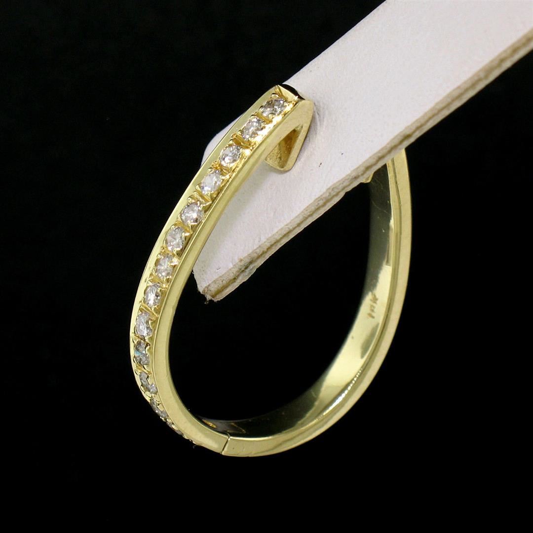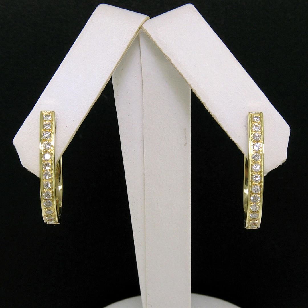 A pair of 18kt yellow gold hoop earrings pave set with 0.75ctw of round brilliant diamonds (F/G - VS1/VS2). The earrings measure approximately 22.95x18.45mm and weigh a total of 6.50 grams.