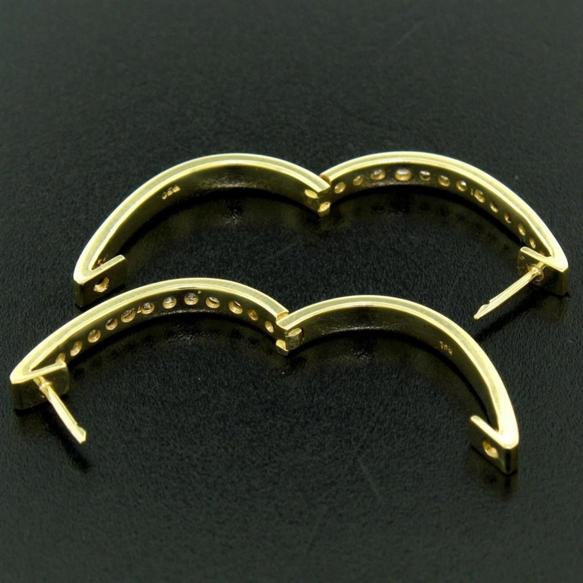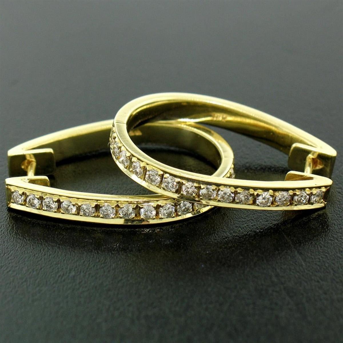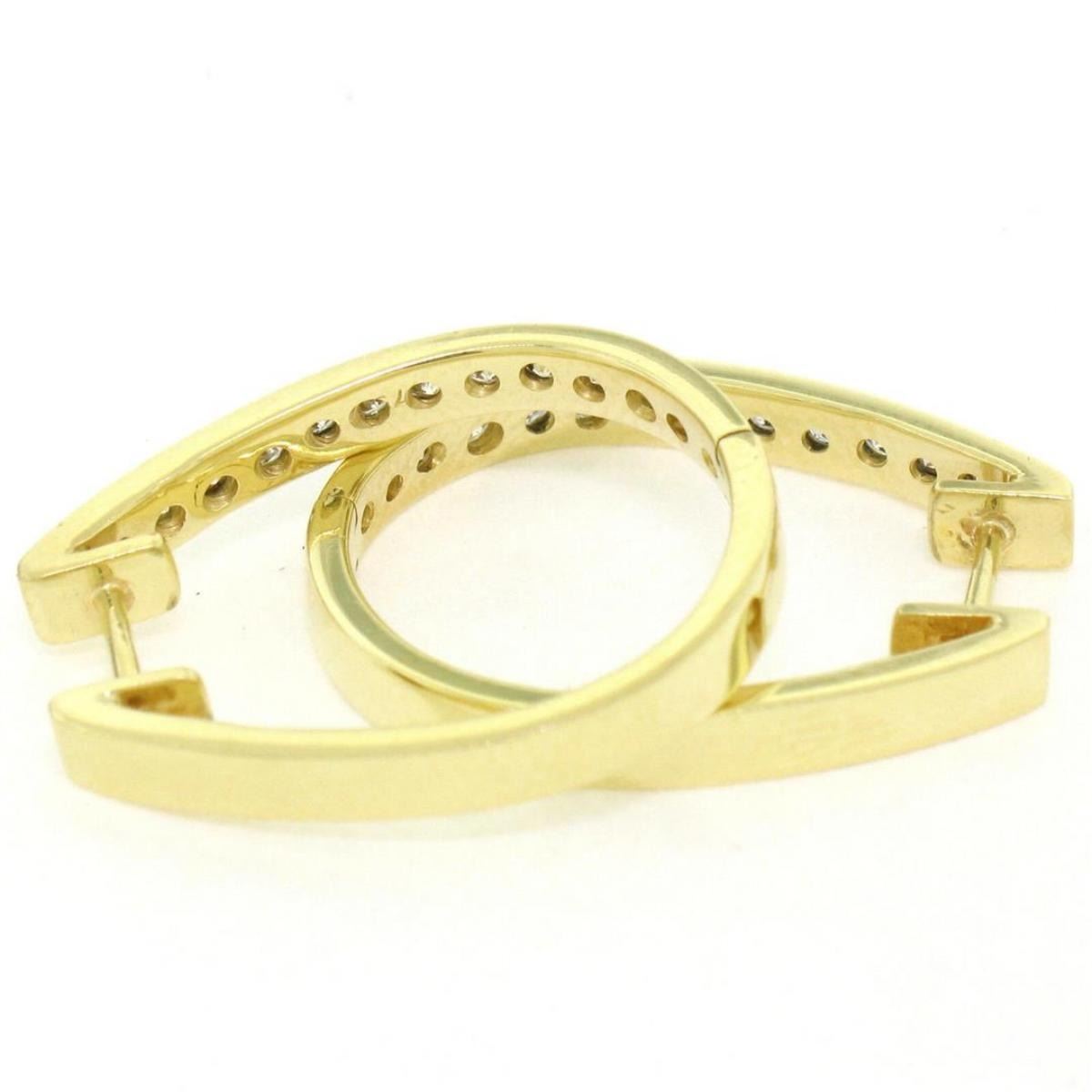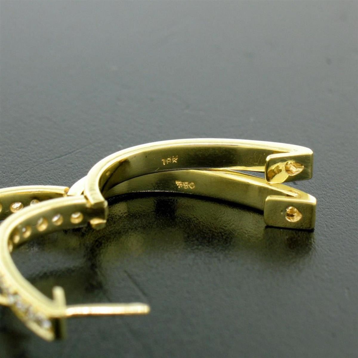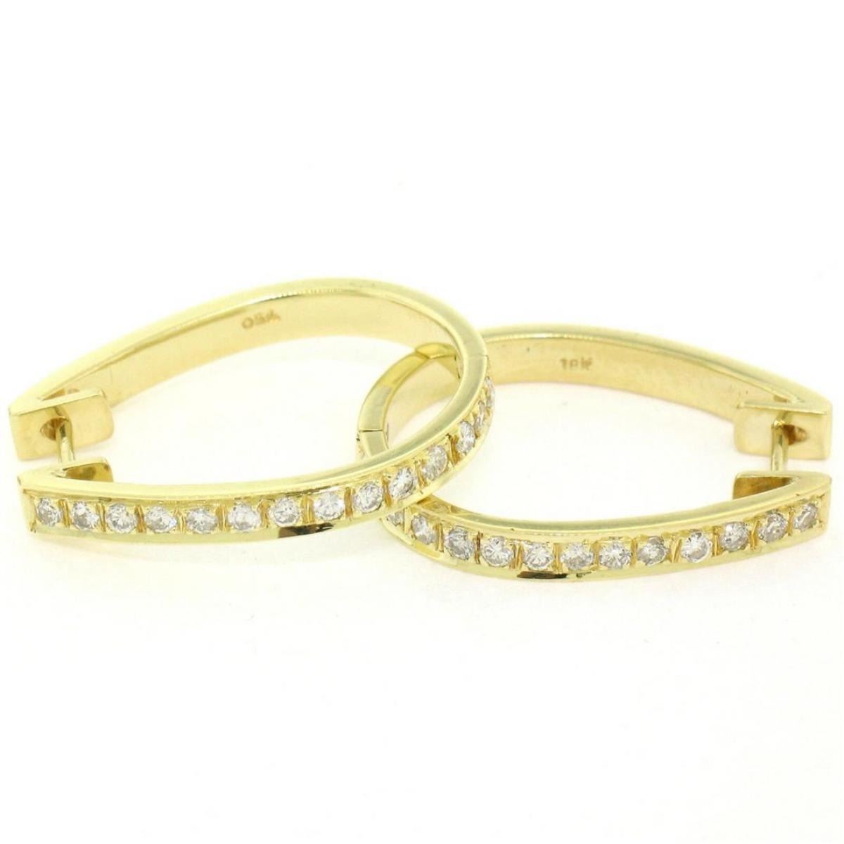 A pair of 18kt yellow gold hoop earrings pave set with 0.75ctw of round brilliant diamonds (F/G - VS1/VS2). The earrings measure approximately 22.95x18.45mm and weigh a total of 6.50 grams.