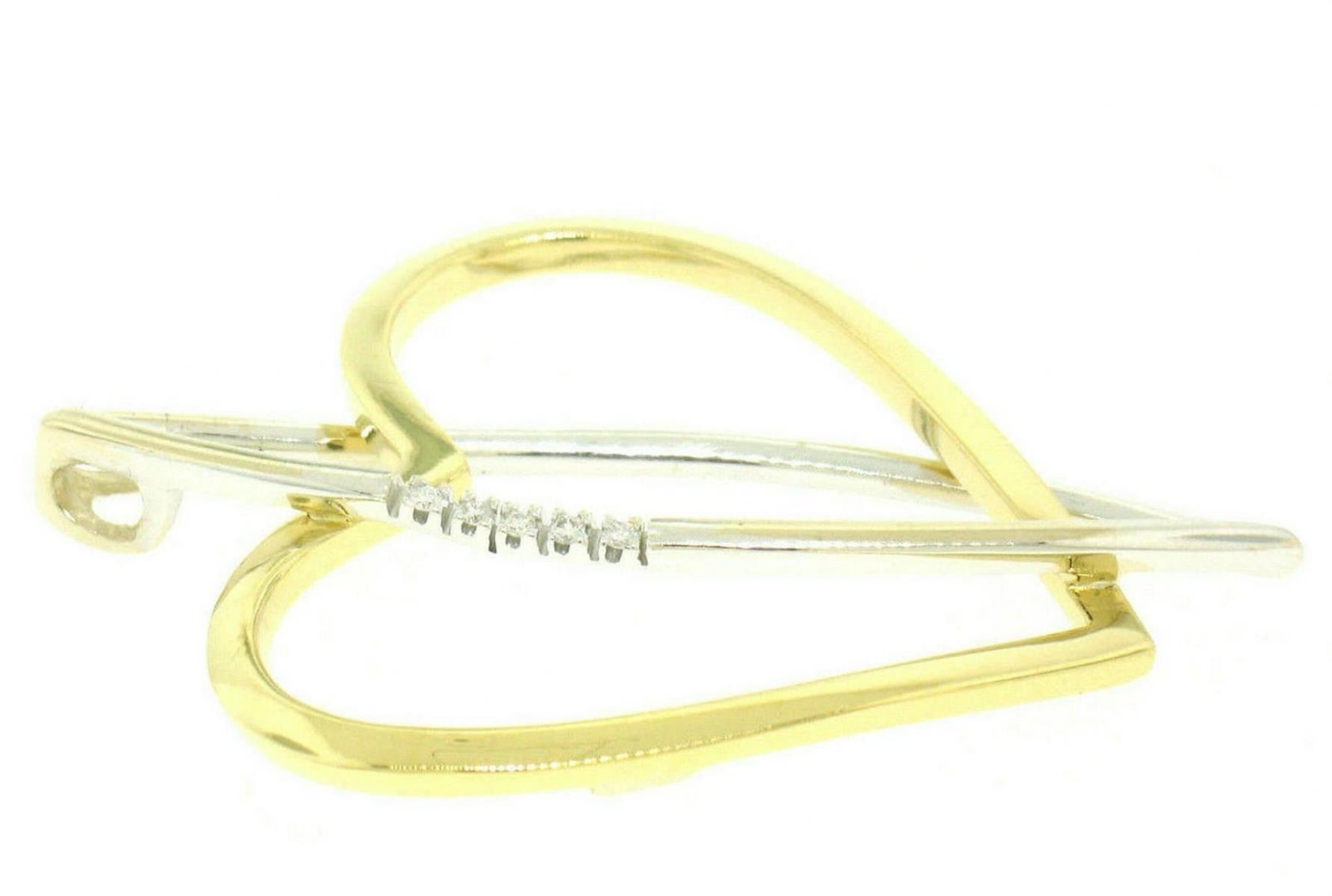 A like new 18kt gold pendant featuring a yellow gold open heart intertrwined with a white gold open marquise shape which is prong set with 0.05ctw of round diamonds (G - VS2). The pendant weighs a total of 6.1 grams and measures 40.72x30.16mm.