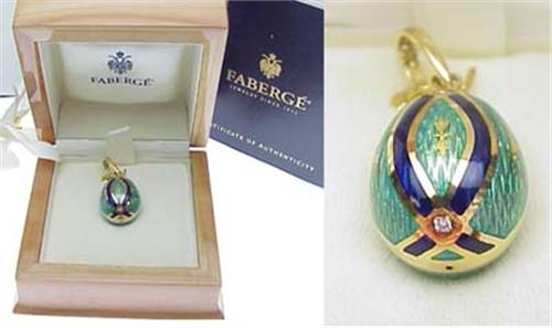 18kt enameled Faberge egg pendant with box and paper work