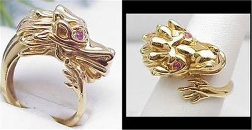 18kt yellow gold dragon ring with ruby eyes 6.3gr finger size 8