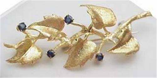 18kt yellow gold leaf motif brooch 7.5gr with sapphires