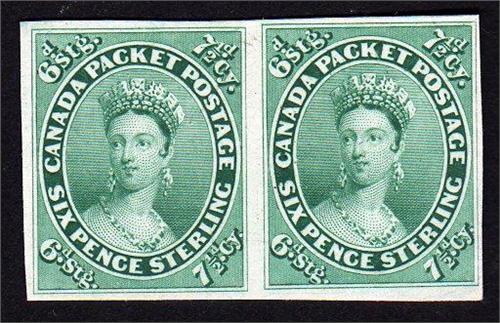#18p XF IMPERF PROOF PAIR *YELLOW GREEN SHADE*