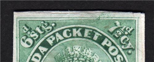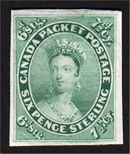#18p-var (MULTIPLE RE-ENTRY AT TOP VARIETY) XF IMPERF PROOF SINGLE *YELLOW GREEN SHADE*