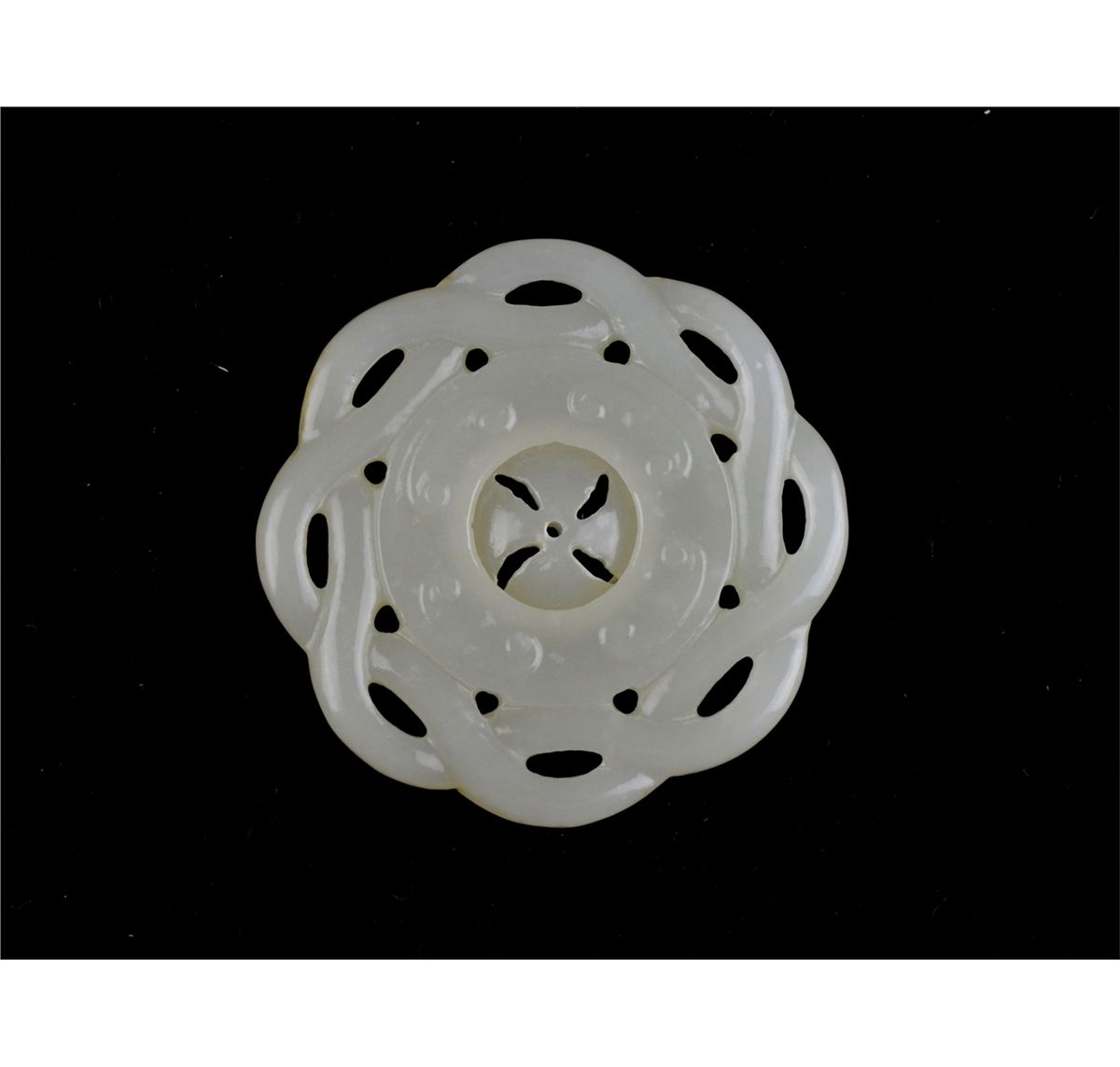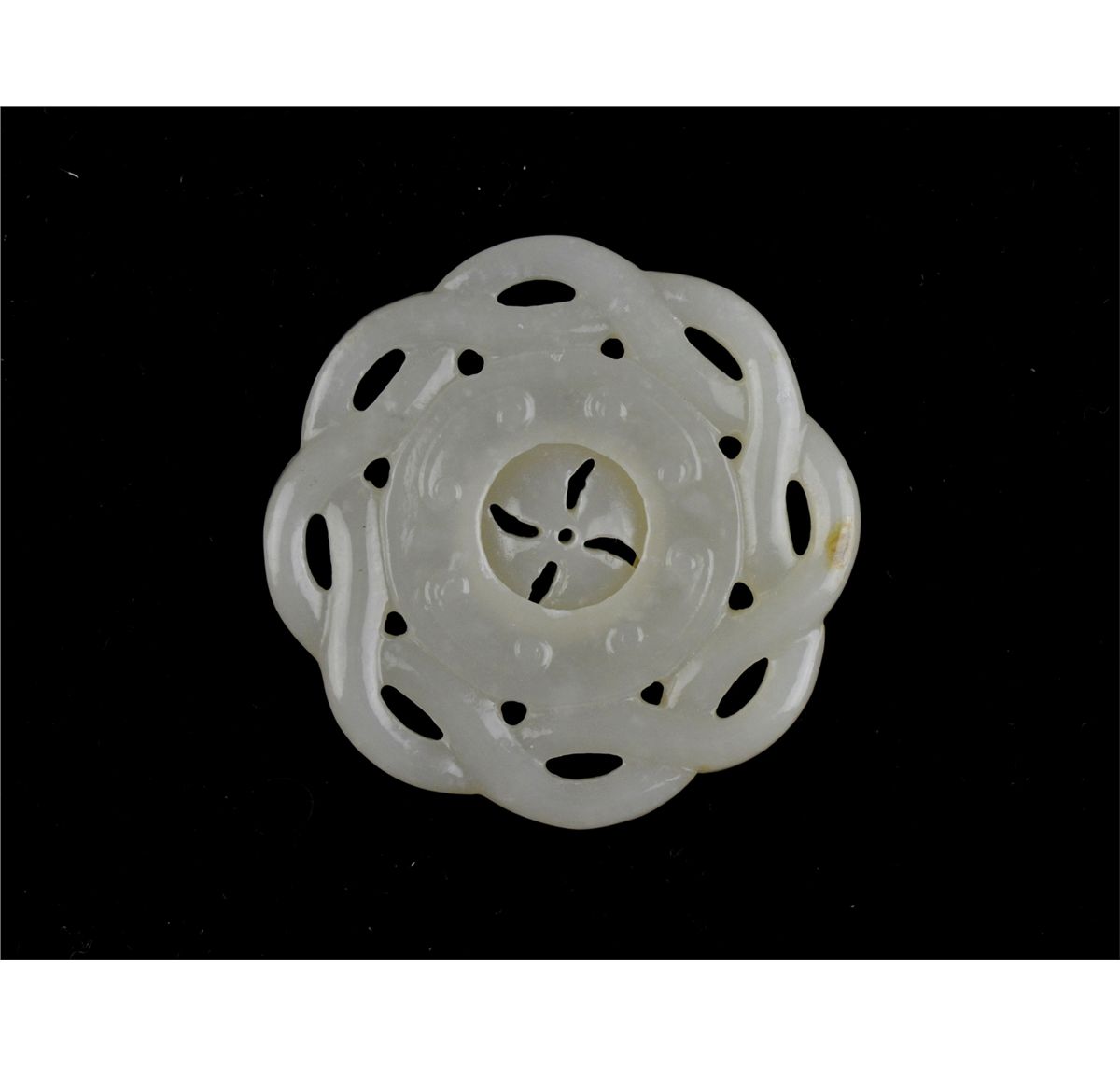 Chinese carved jade pendant; circular pendant; the stone of translucent white tone, 18th/19th Century; D: 5.25 cm, 34 grams